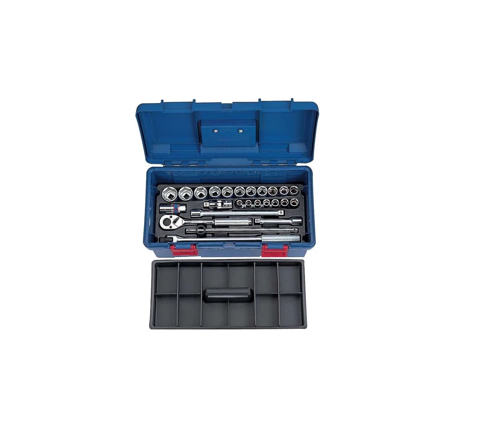 набор инструментов универсальный, 25 предметов king tony 41526mr выделяется из ряда своих собратьев тем, что расположен в ложементе и в специальном боксе. объём бокса позволяет дополнить базовую комплектацию набора всем необходимым, исходя из специфики выполнения работ, а пластиковый лоток, входящий в комплект, удобен для хранения мелкого крепежа или расходников. и всё это – в одном боксе. упаковав ваш арсенал инструментов в таком боксе, вы можете перенести всё необходимое к месту работы или хранить на полке вашей мастерской.