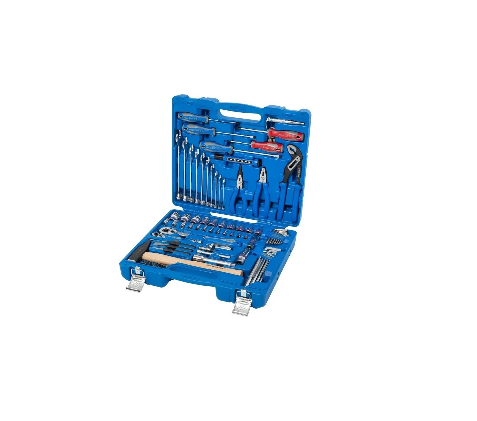 Набор инструментов king tony (головки 1/2" и 1/4", ключи, отвёртки, плоскогубцы, биты, молоток, фонарик)