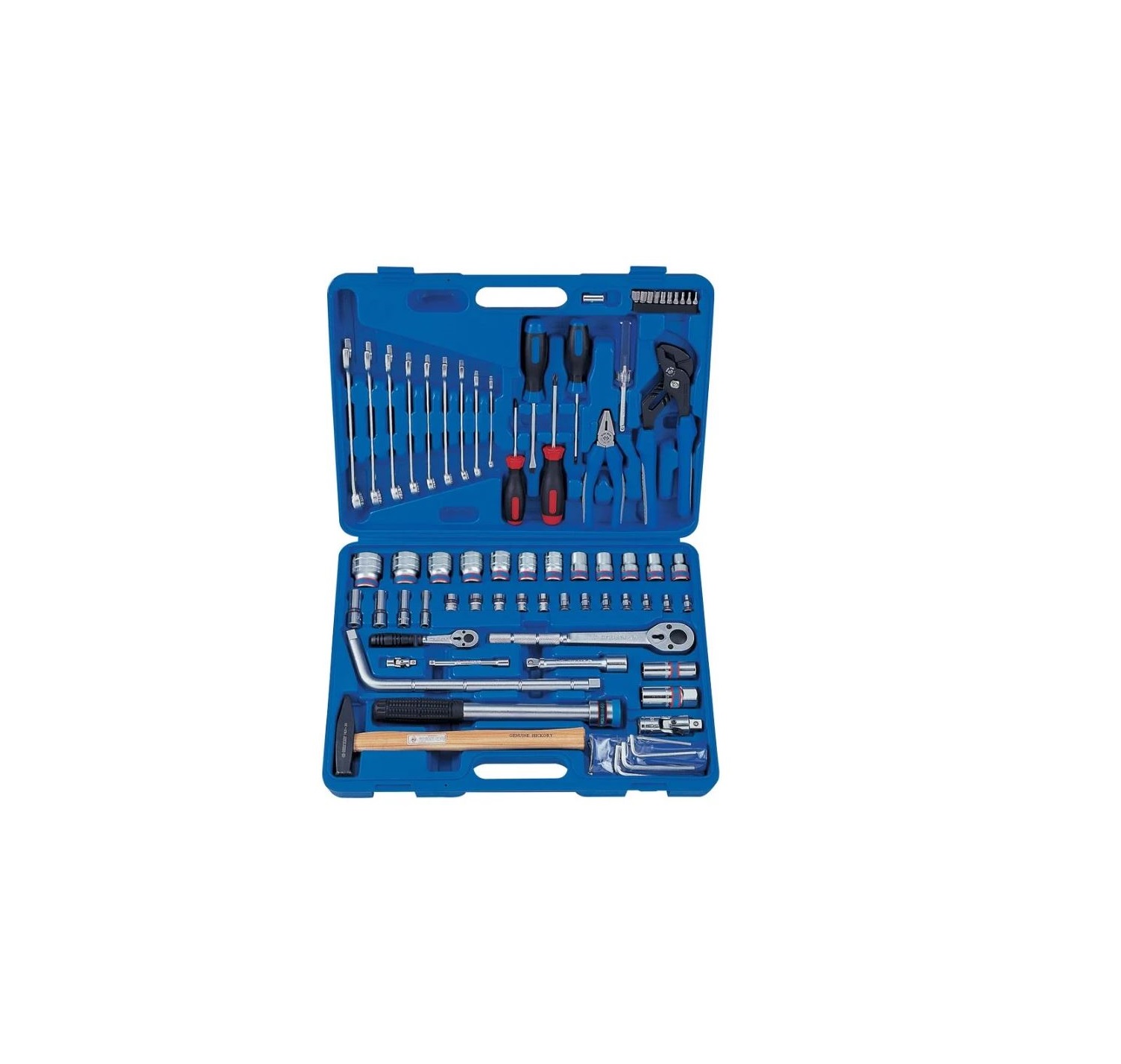 Универсальный набор инструментов (75 предметов) King Tony 7075MR01 выполнен из легированной хром-ванадиевой стали высокой прочности. Хромированное покрытие эффективно защищает каждый элемент набора от образования коррозии. Рукоятки отличаются стойкостью к разрушению под воздействием бензина или технического масла. Торцевые головки изготавливаются методом ковки, что гарантирует им устойчивость к деформации.