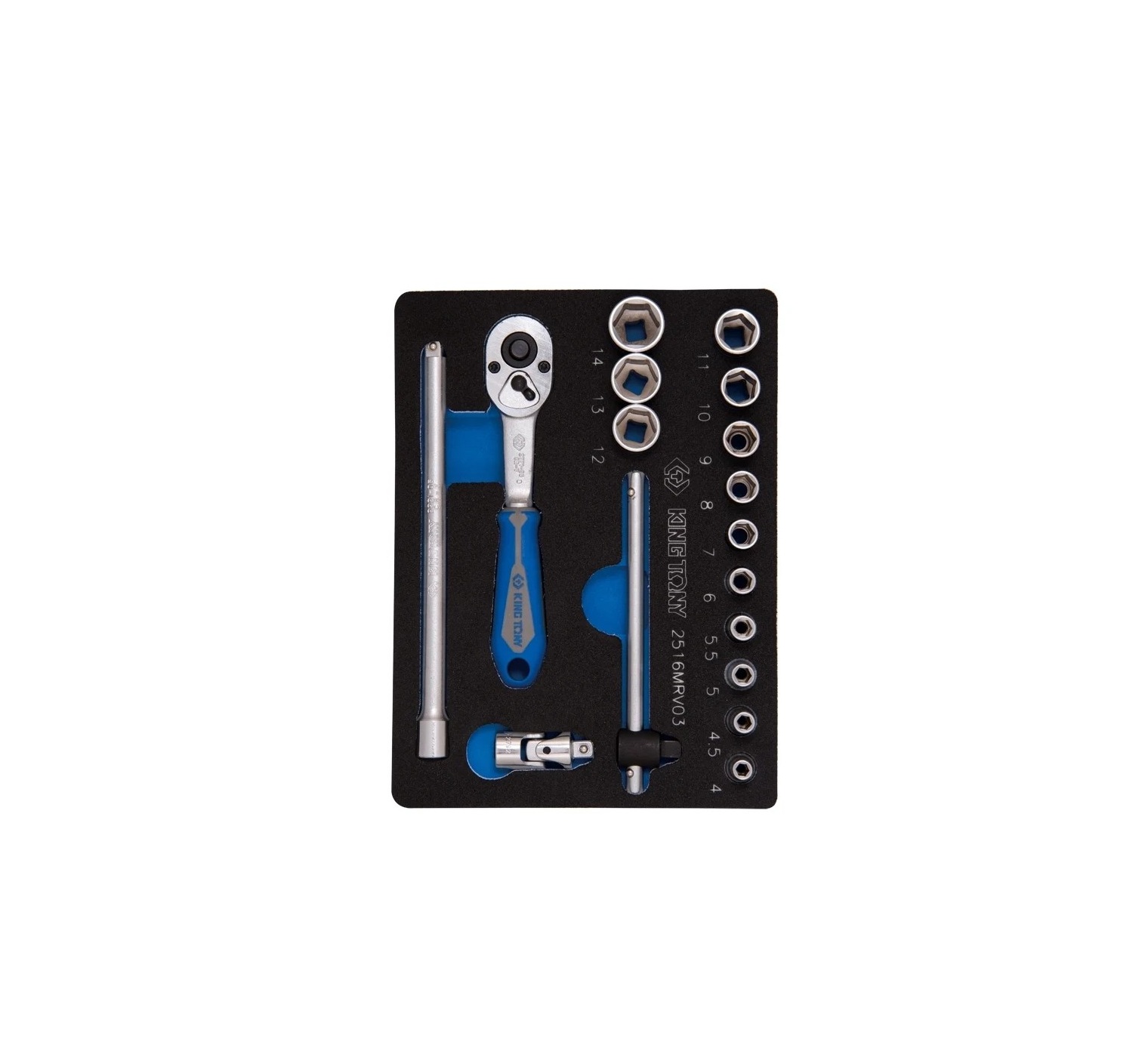 Ложемент KING TONY 85251632B03 для набора торцевых головок 1/4" с принадлежностями 2516MRV03, EVA.