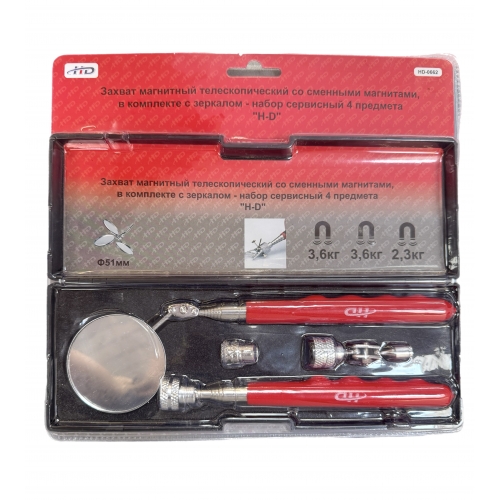 Захват магнитный телескопический со сменными магнитами, в комплекте с зеркалом - набор 4 предмета