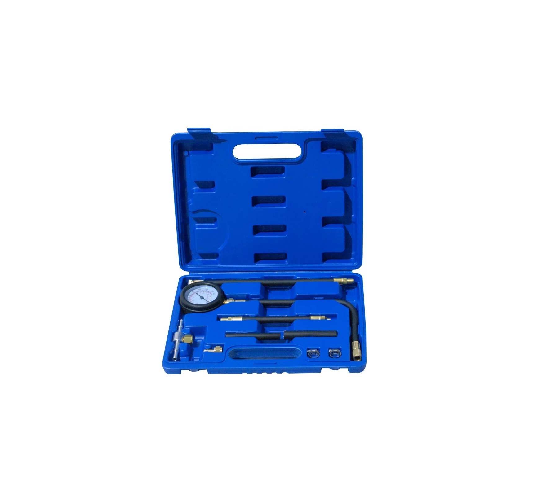 Тестер давления топлива TA-G1081 подходит для применения в большом количестве автотранспортных предприятий. При компактных габаритах и весе около 800 граммов учтены все основные потребности сервисов – есть 3 адаптера под диаметры 1/8, 1/4 и 3/8 дюйма, точный манометр 0-7 бар, пять различных шлангов, зажимы.