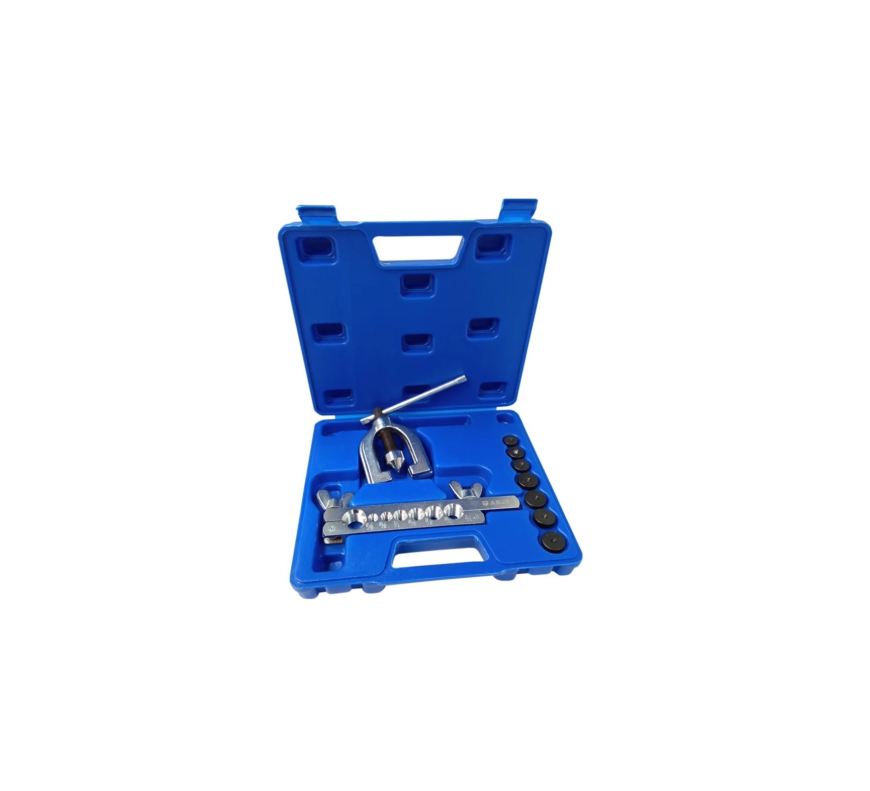 Инструмент для развальцовки труб ТА-М1071 – это набор из 10 предметов для обработки окончаний медных и латунных трубок различных систем автомобиля. Аналоги модели:TA-M1070 и MHR09065.