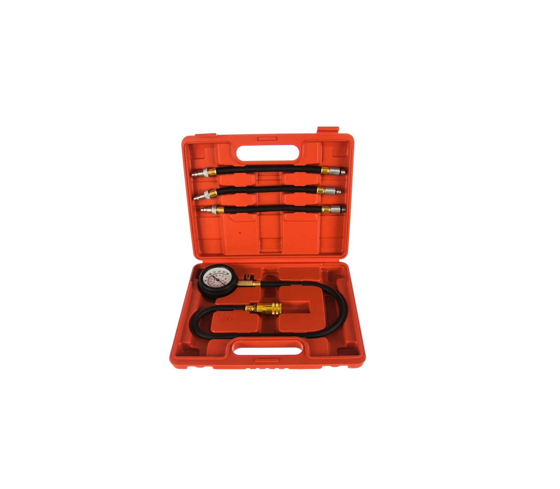 Компрессометр TA-G1007 предназначается для работы с бензиновыми двигателями. Манометр для удобства пользования размещается на длинном гибком шланге (600 мм), а в комплекте много соединений под разные стандарты.