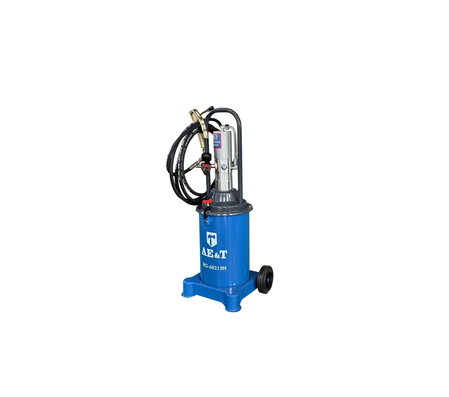 Нагнетатель густой смазки HG-68213M посредством пневматического насоса создает высокое давление, заставляя сжиматься смазочный материал, который поступает в раздаточный пистолет и распыляется путем нажатия курка. Оборудование подходит к использованию на автотранспортных предприятиях, а также в промышленности и железнодорожном секторе.