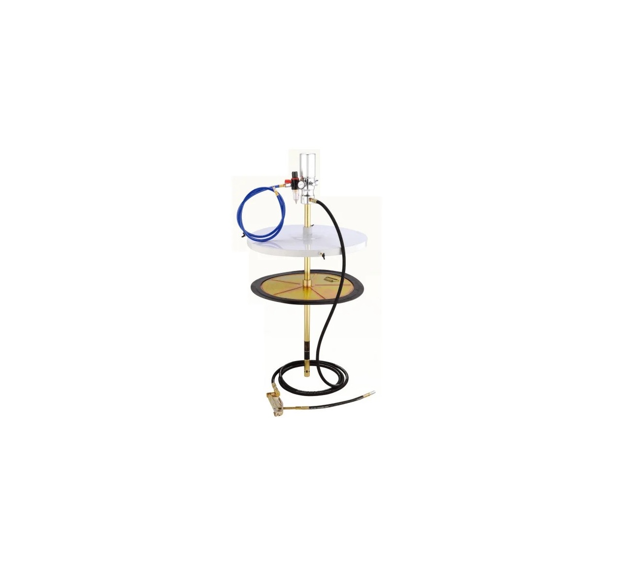 Устройство приводится в действие воздушным компрессором, что является надежным и экологически безопасным способом, не создает искр во время работы. Компрессор и тележка для перевозки бочки в комплект не входят.