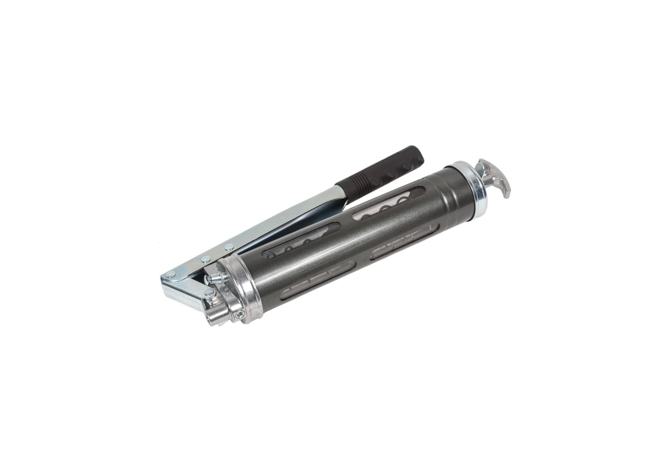 Шприц плунжерный с двумя поршнями Nordberg NO2406 для густой смазки и прозрачными окошками в тубе.