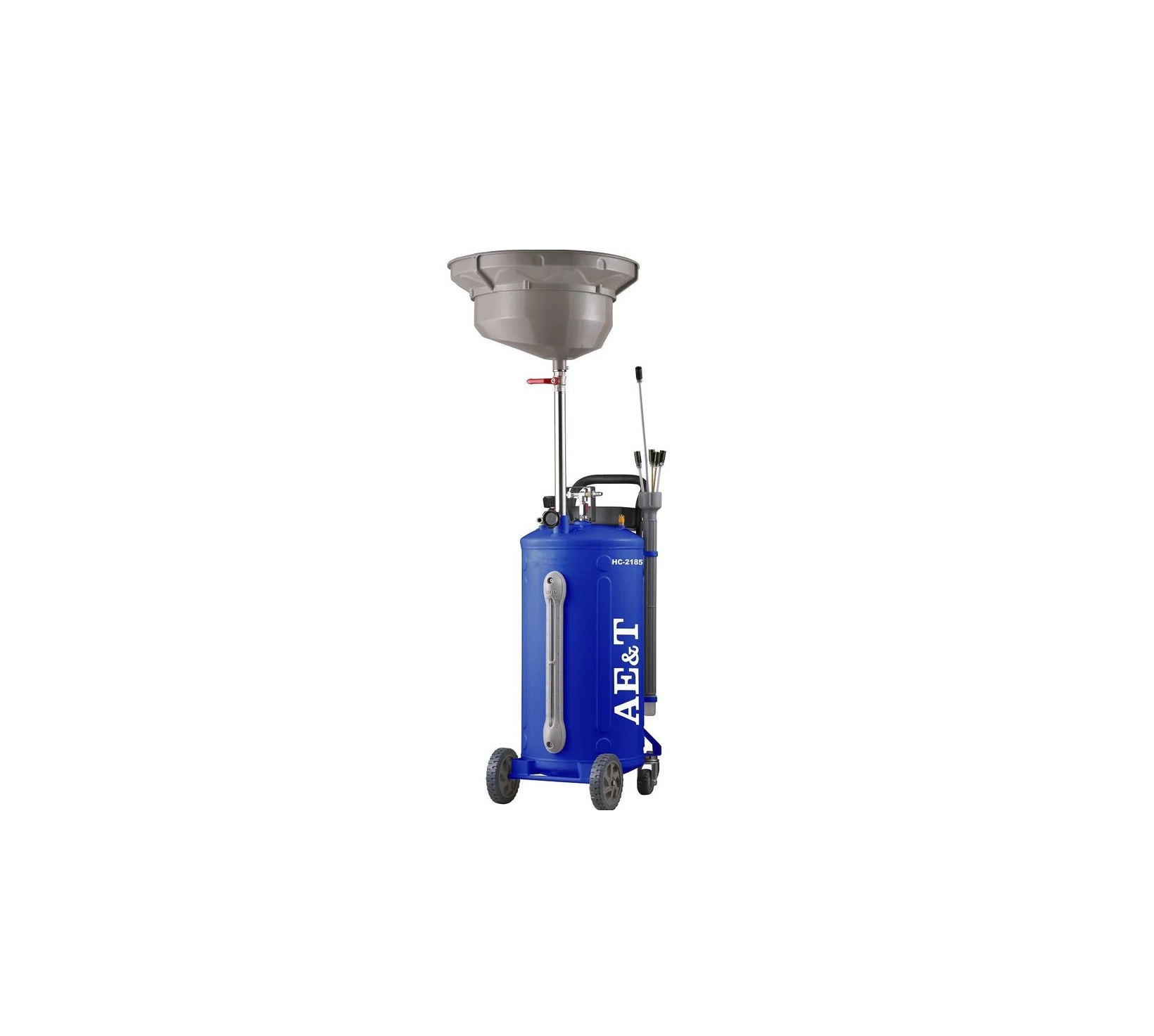 Установка для замены отработанного масла НС-2185 предназначена для сбора жидкостей двигателя или коробки передач автомобиля в емкость объемом 70 л путем самотека или при помощи вакуума.