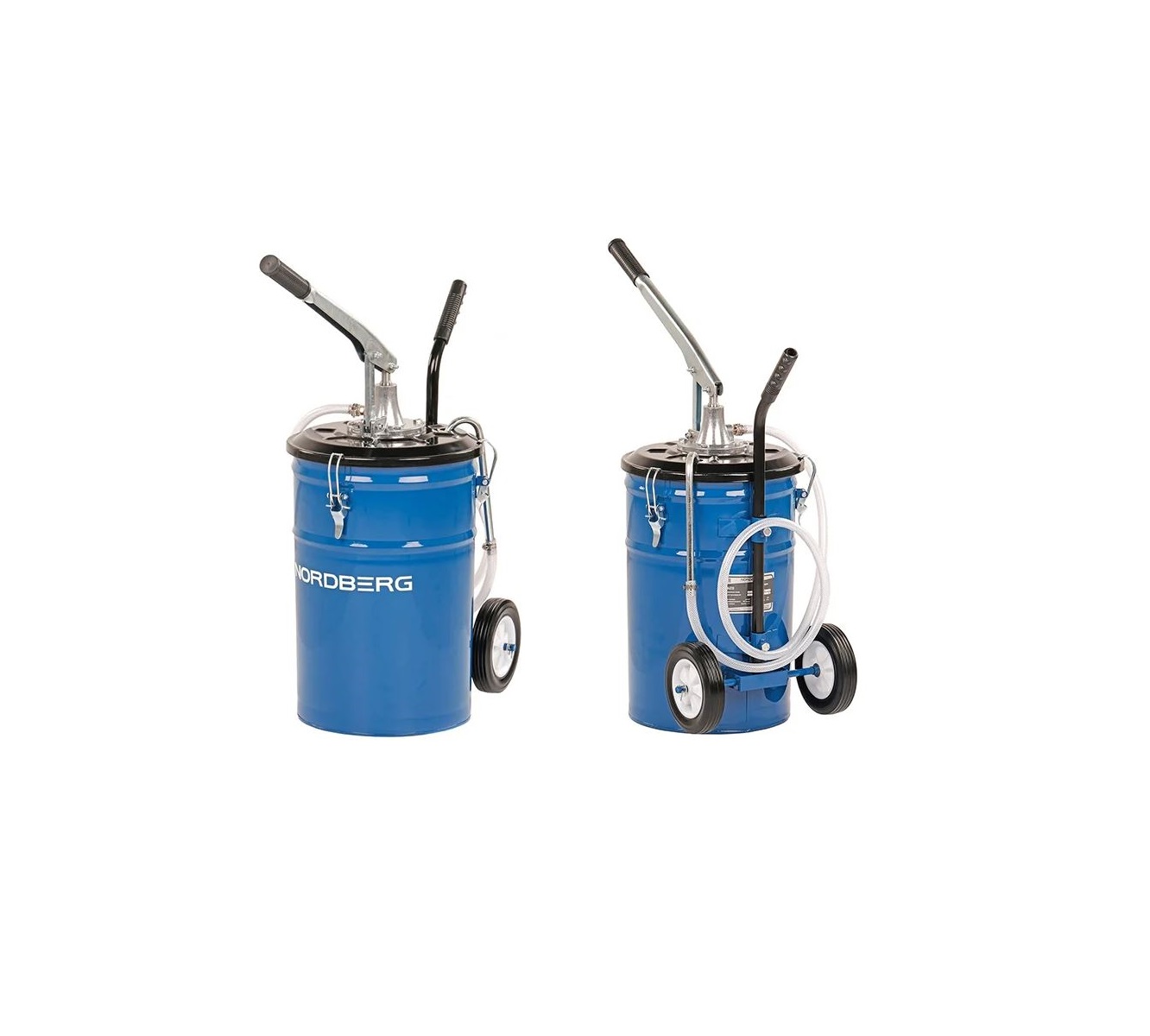 Установка для раздачи масла с ручным насосом Nordberg N4030 представляет собой стальную емкость объемом 25 л, c ручкой для удобства перемещения в помещении автосервиса, оборудована ручным насосом, который создает давление, необходимое для раздачи масла.