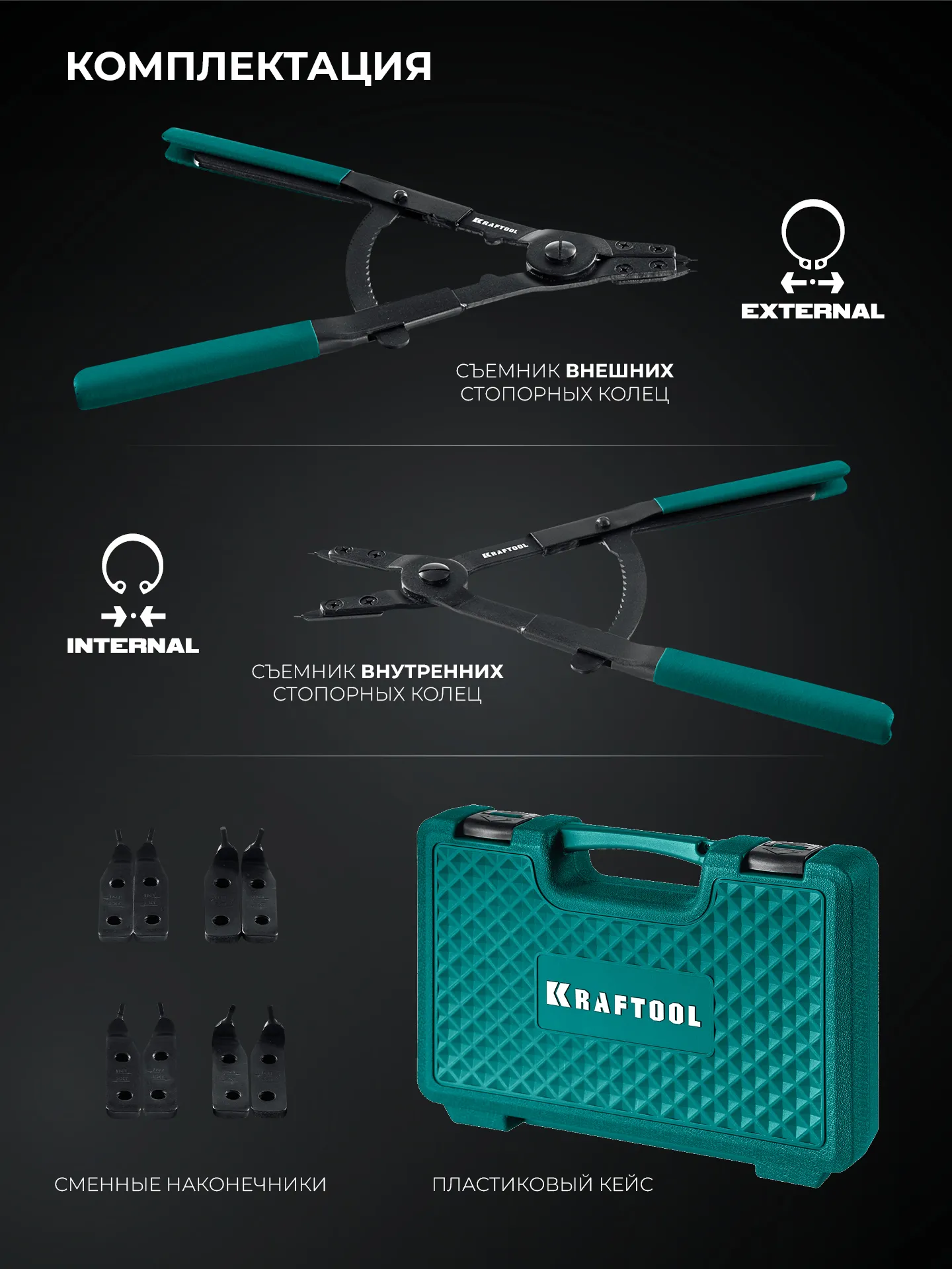 Профессиональный набор особомощных съемников стопорных колец (внешние и внутренние) для тяжелой и крупногабаритной техники