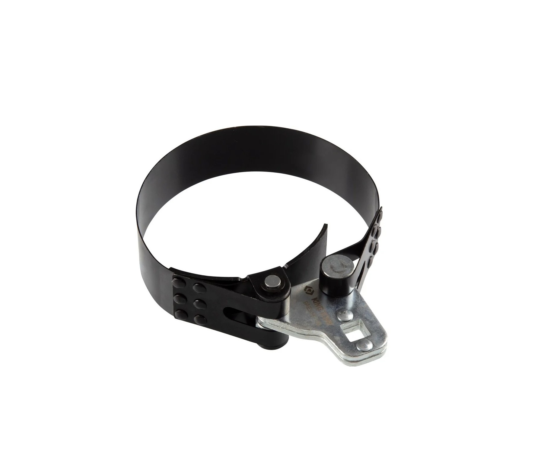 Ленточный металлический съёмник предназначен для демонтажа масляных фильтров, корпусных деталей и других цилиндрических элементов, доступ к которым затруднён. Инструмент надевается на объект, лента затягивается при вращении привода, обеспечивая надежный захват без повреждения поверхности.