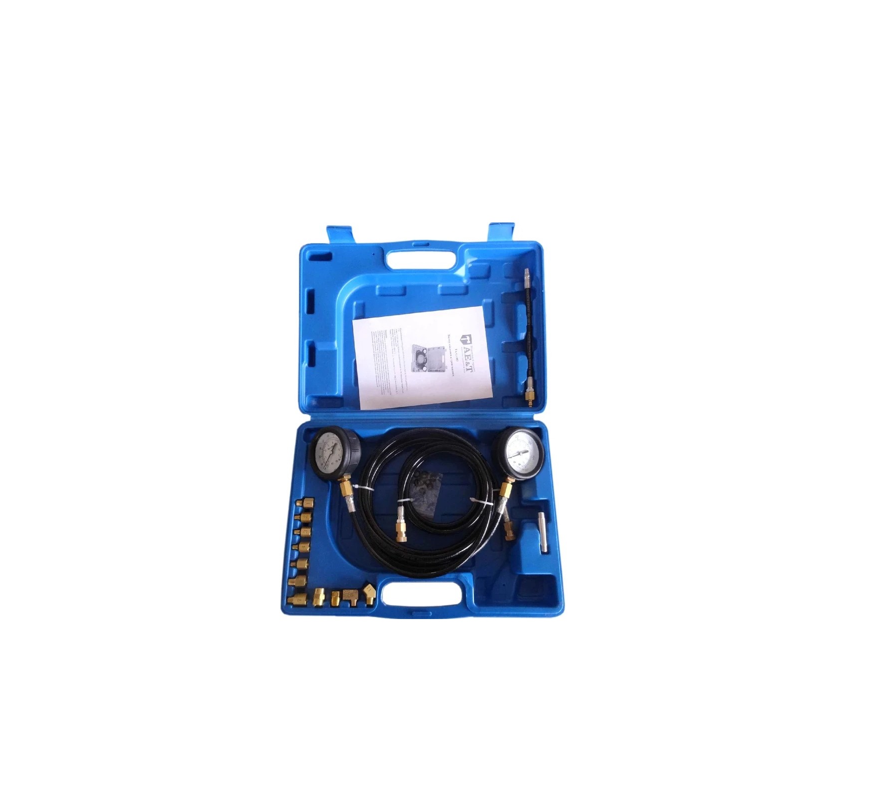 Тестер контроля давления контуров гидромеханических трансмиссий применяется для проведения аппаратного тестирования и регулировки давления рабочей жидкости в линейном и управляющем контурах агрегатов гидромеханических трансмиссий (АКПП). Набор снабжен двумя гидрозаполненными манометрами высокого и низкого давления:0-7 бар и 0-35 бар. В наборе также представлен ассортимент соединительных элементов и переходников, позволяющих производить проверку агрегатов автоматических трансмиссий практически всех известных производителей.