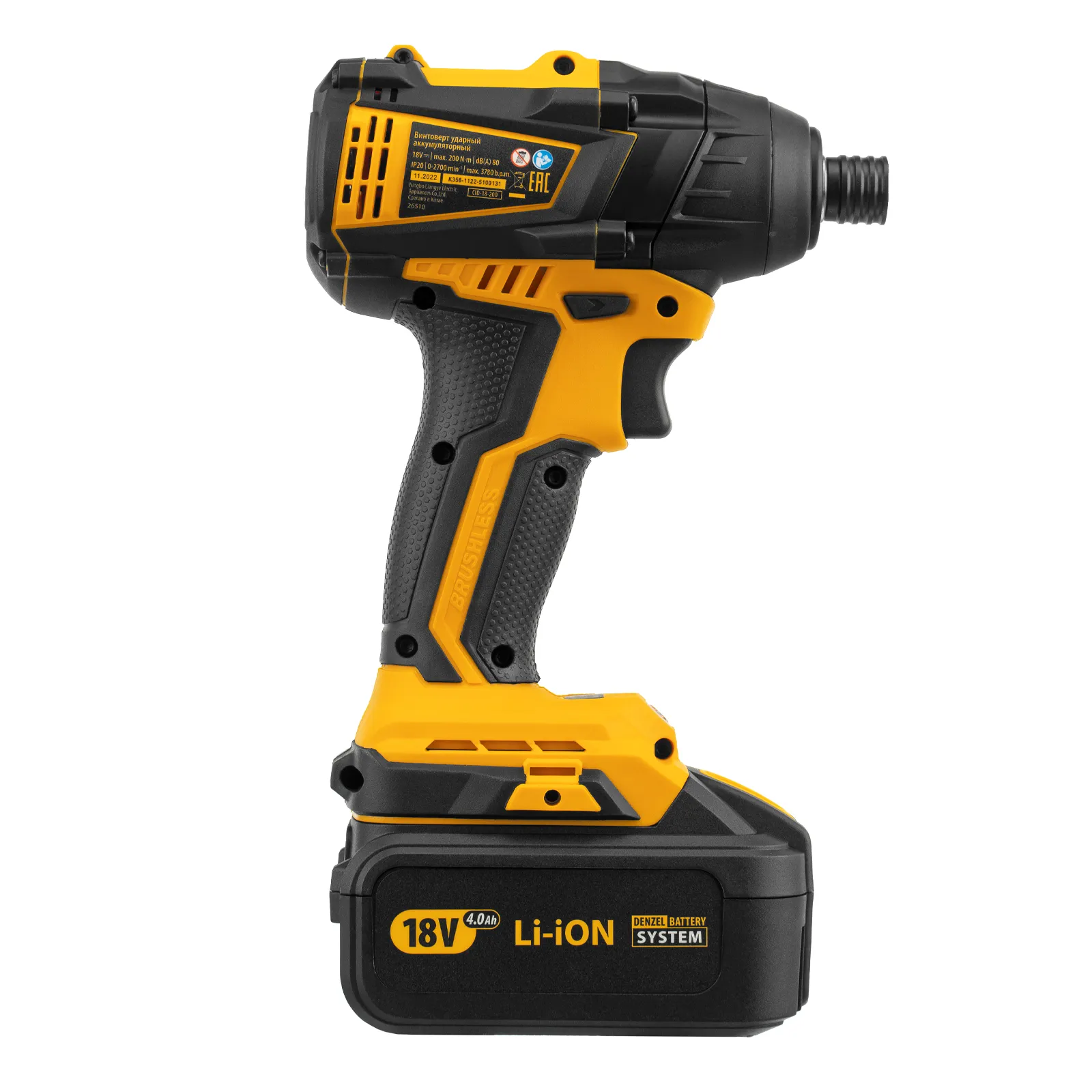 Ударный аккумуляторный винтоверт Denzel CID-IB-200 26510 с бесщеточным двигателем работает от батареи Li-Ion с рабочим напряжением 18 В и предназначен для завинчивания и отвинчивания винтов и шурупов, а также затягивания и откручивания гаек. Эффективен для демонтажа перетянутого и закисшего крепежа, закручивания длинных болтов и шурупов. Пригодится для сборки мебели и различных конструкций.