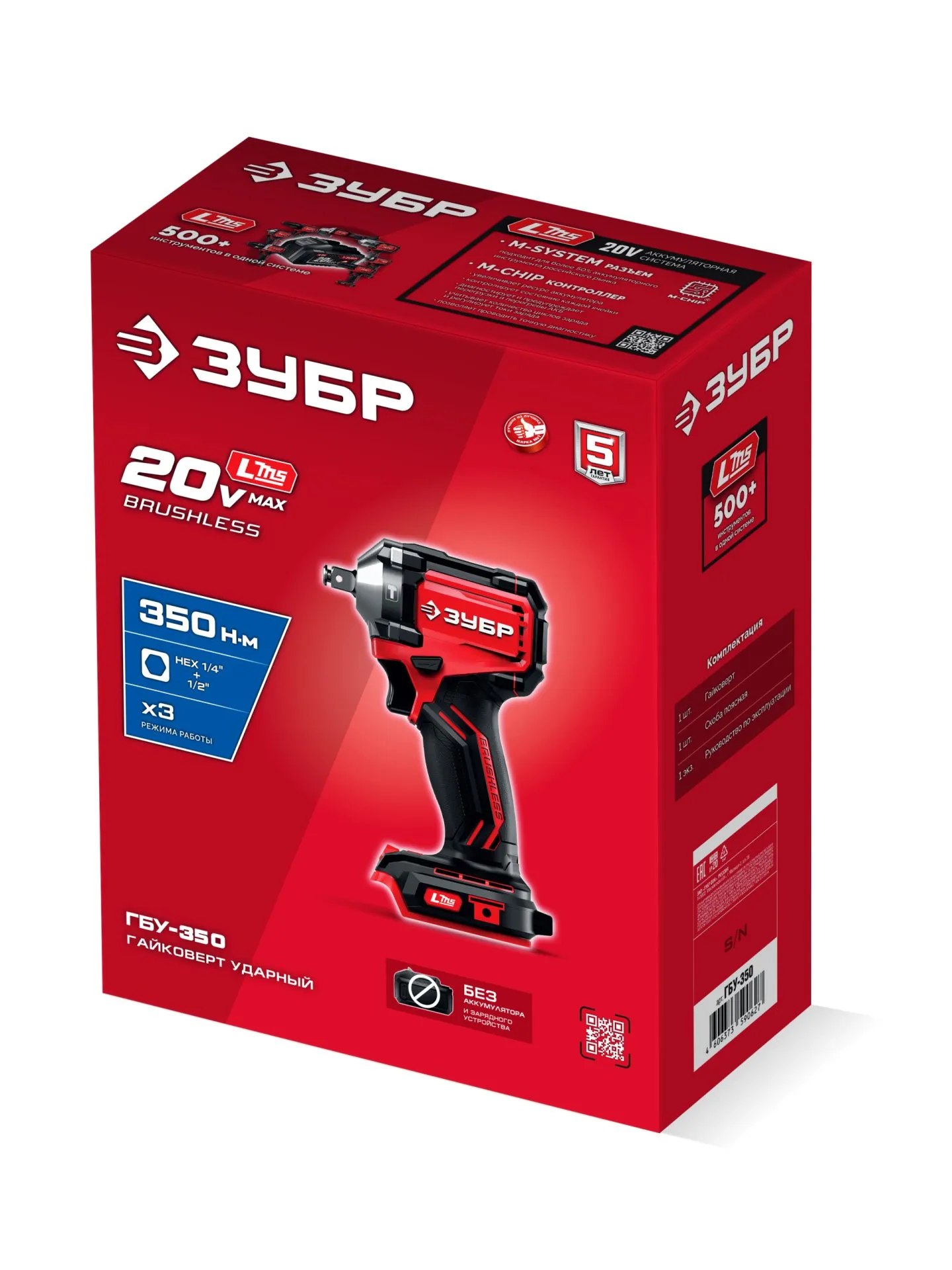 Бесщеточный ударный гайковерт ЗУБР системы LMS с максимальным крутящим моментом 350 Нм предназначен для фиксации резьбовых соединений размером до М18. Ударная функция с тангенциальным направлением удара обеспечивает эффективное заворачивание без реактивного момента на кисть оператора