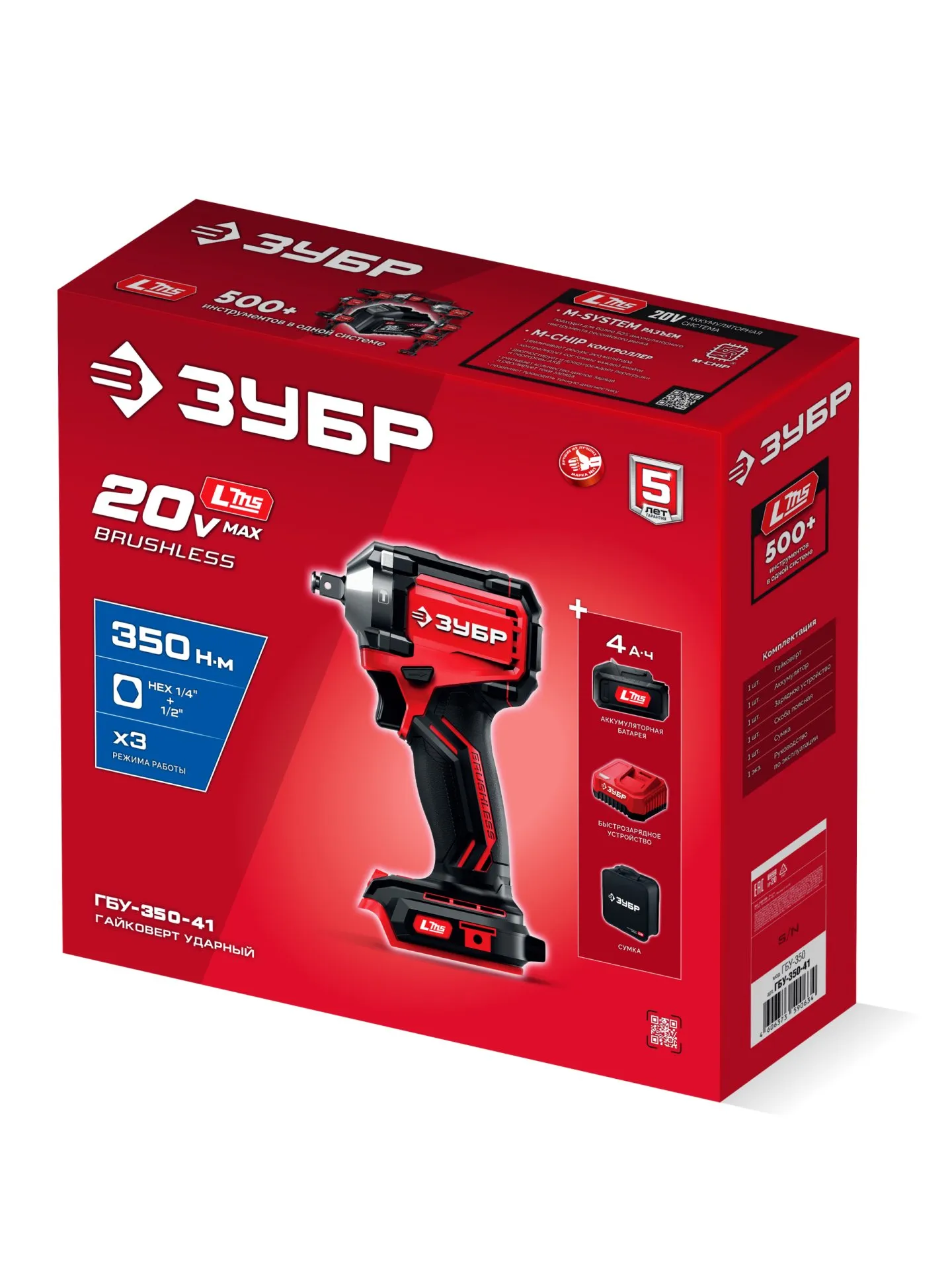 Бесщеточный ударный гайковерт ЗУБР системы LMS с максимальным крутящим моментом 350 Нм предназначен для фиксации резьбовых соединений размером до М18. Ударная функция с тангенциальным направлением удара обеспечивает эффективное заворачивание без реактивного момента на кисть оператора. Комплектация с аккумулятором большой емкости позволяет работать дольше на одном заряде