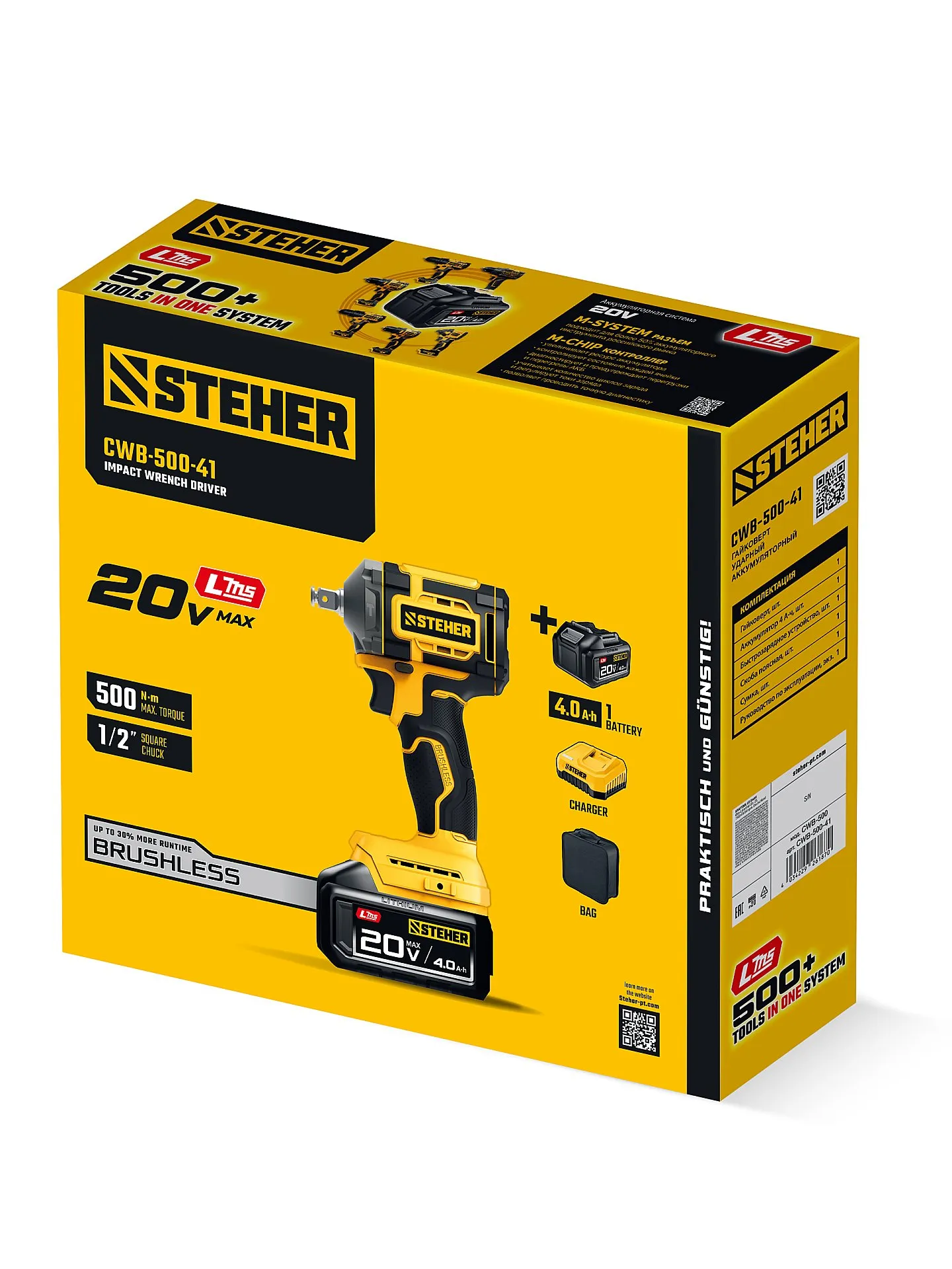 Бесщеточный ударный гайковерт Steher с BRUSHLESS двигателем и максимальным крутящим моментом 500 Н∙м предназначен для фиксации резьбовых соединений размером до М22. Ударная функция с эффективным направлением удара обеспечивает легкое заворачивание без лишней нагрузки на кисть оператора. Имеет современную аккумуляторную систему LMS с 1 АКБ в комлекте, совместимую с одним известным брендом.