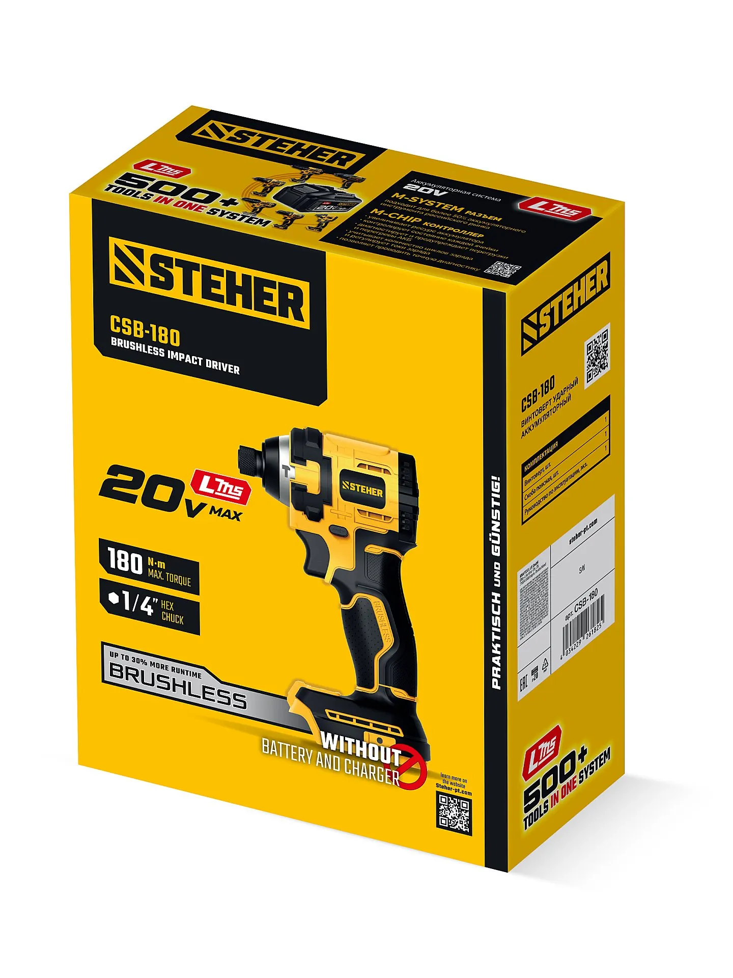 STEHER 20 В, 180 Н·м, без АКБ (LMS), бесщеточный ударный винтоверт (CSB-180) наличный и безналичный расчет