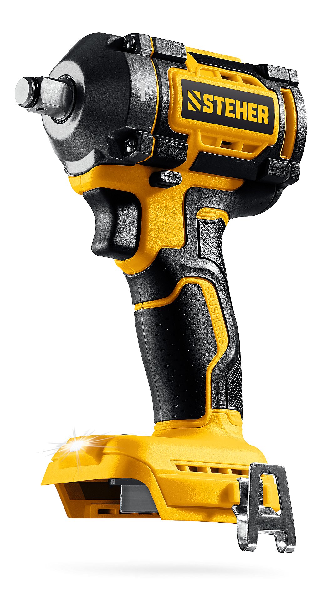 Бесщеточный ударный гайковерт Steher с BRUSHLESS двигателем и максимальным крутящим моментом 500 Н∙м предназначен для фиксации резьбовых соединений размером до М22. Ударная функция с эффективным направлением удара обеспечивает легкое заворачивание без лишней нагрузки на кисть оператора. Имеет современную аккумуляторную систему LMS с 1 АКБ в комлекте, совместимую с одним известным брендом