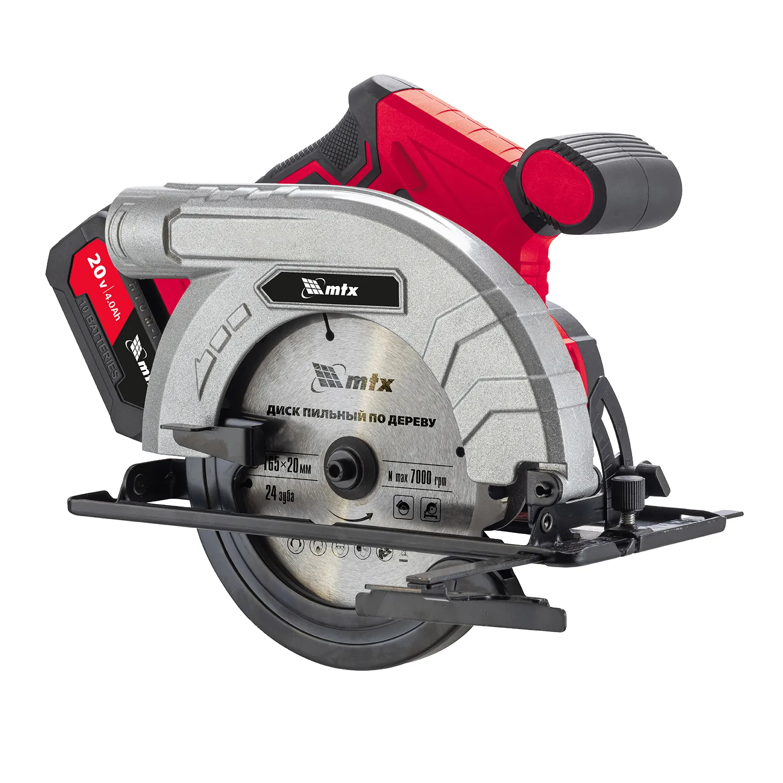 Аккумуляторная циркулярная пила MTX CCSU-20-165 27480 работает от аккумулятора Li-Ion 20 В и совместима с пильными дисками диаметром 165 мм. Предназначена для выполнения продольных и поперечных резов в древесине. При использовании специальной оснастки возможен распил заготовок из алюминия. Двигатель поддерживает частоту вращения шпинделя 4500 об/мин, что обеспечивает высокую производительность. Глубина пропила регулируется в зависимости от толщины обрабатываемой детали и достигает 55 мм под углом 90° и 36 мм под углом 45°. Аккумулятор Li-Ion емкостью 4 А·ч обеспечивает стабильную работу в течение длительного времени.