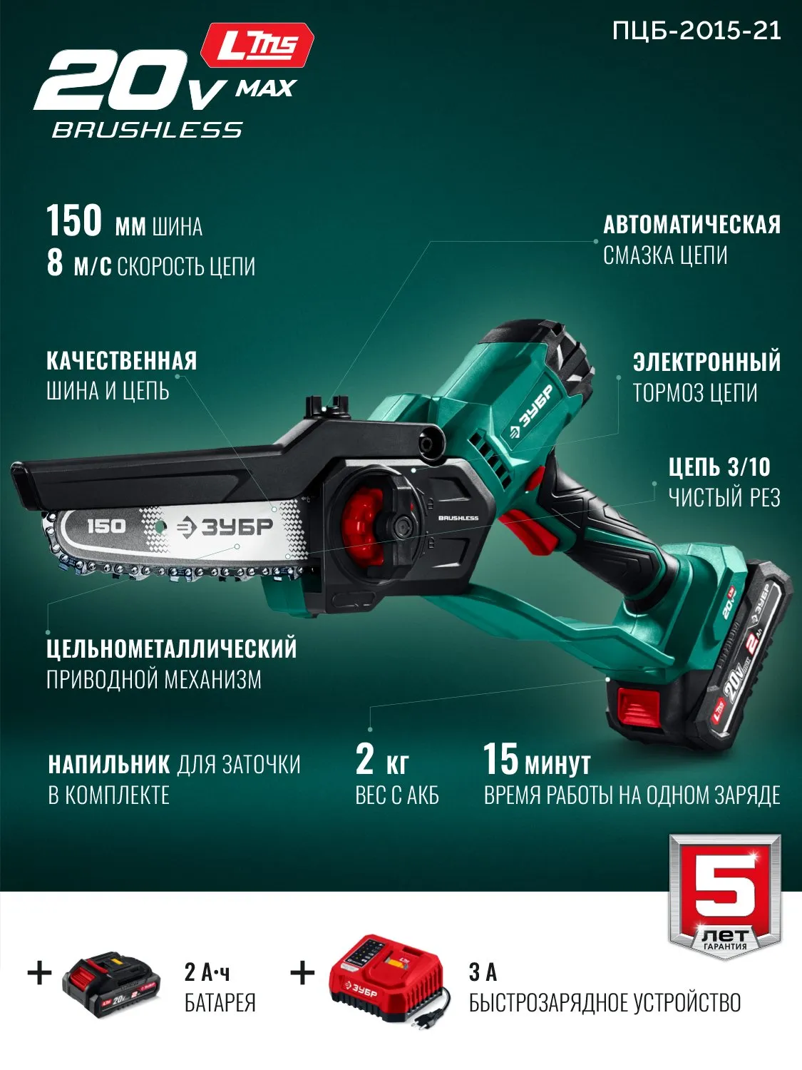 Аккумуляторная мини-пила ЗУБР создана для работы в саду, обрезки веток и простых строительных работ. Мощный BRUSHLESS двигатель и качественная цепь позволят быстро выполнить работу