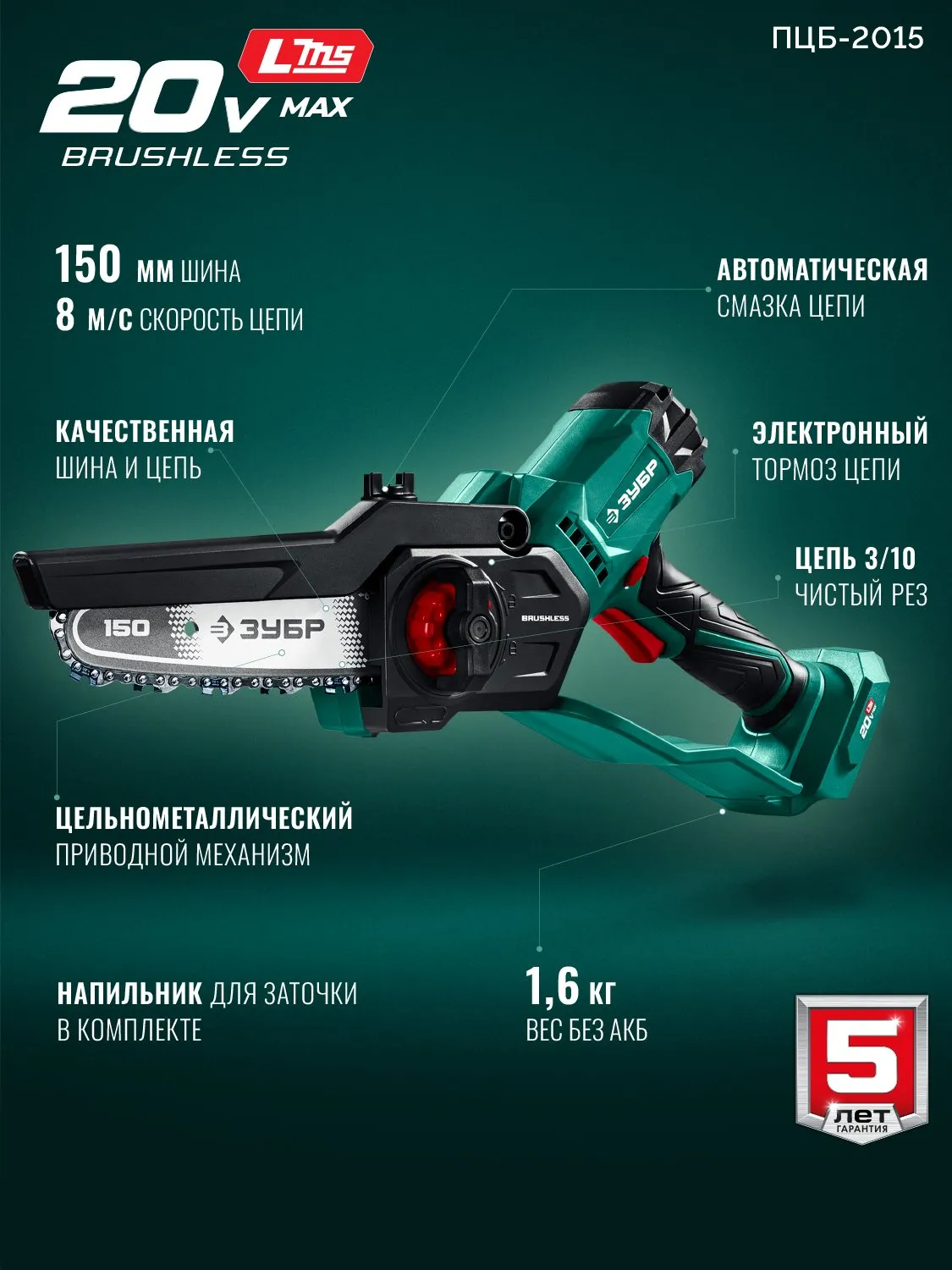 Аккумуляторная мини-пила ЗУБР создана для работы в саду, обрезки веток и простых строительных работ. Мощный BRUSHLESS двигатель и качественная цепь позволят быстро выполнить работу