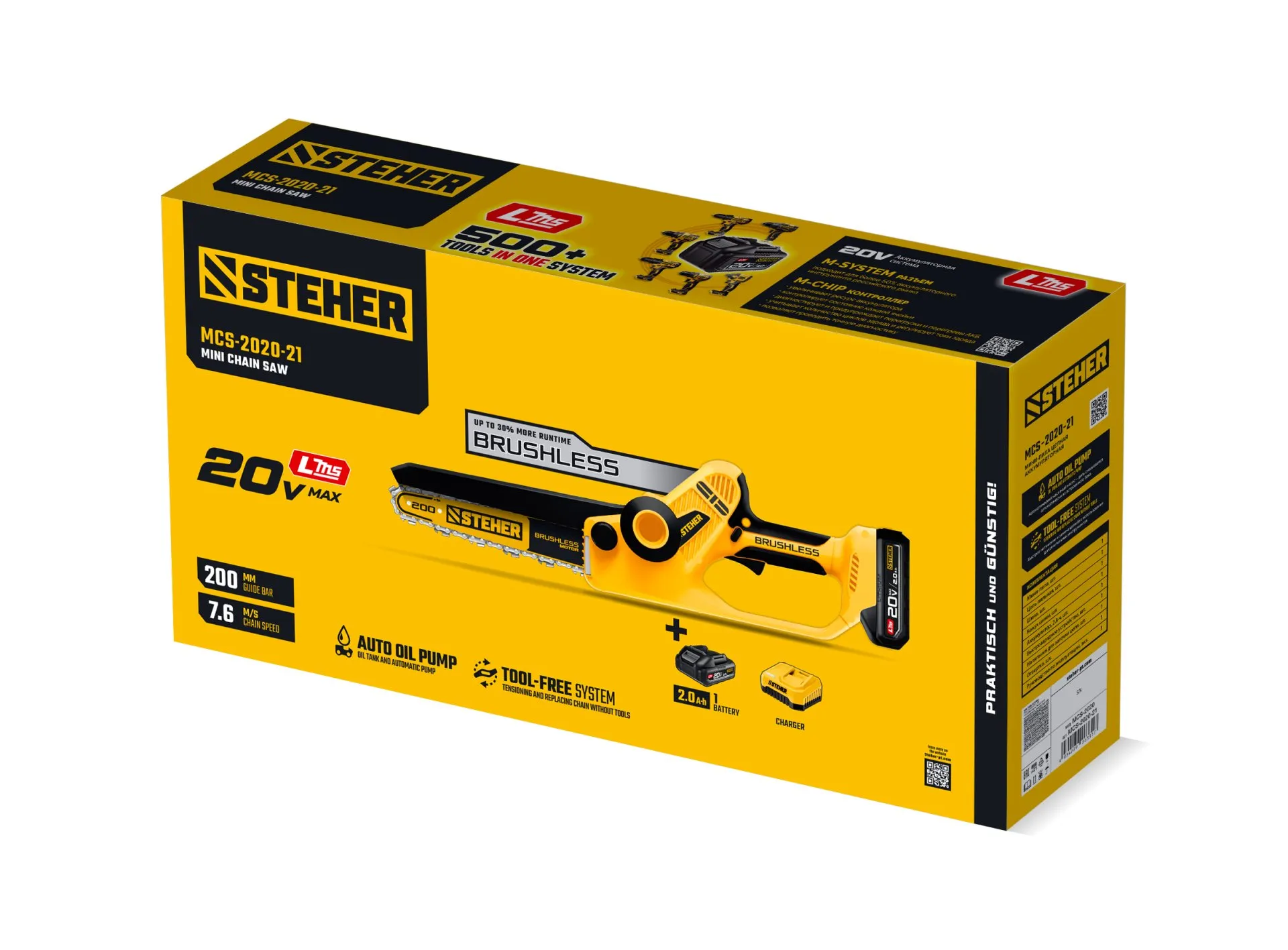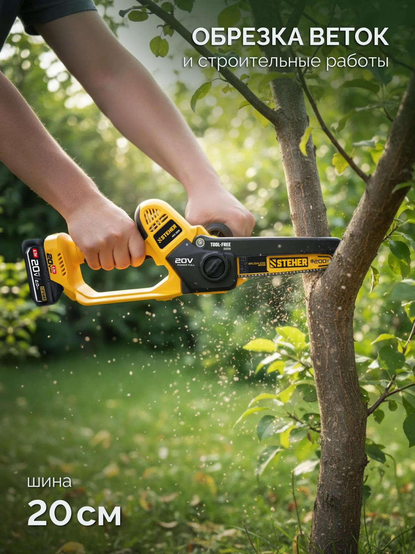 Аккумуляторная мини-пила STEHER создана для работы в саду, обрезки веток и простых строительных работ. Мощный BRUSHLESS двигатель и качественная цепь позволят быстро выполнить работу