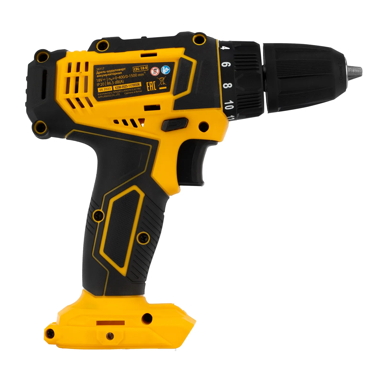 Аккумуляторная дрель-шуруповерт Denzel CDL-18-0 26117 с рабочим напряжением 18 В предназначена для ввинчивания и вывинчивания винтов и шурупов, а также получения отверстий в различных конструкционных материалах: металле, древесине, пластмассе и т. п. Максимальный диаметр отверстий в металле составляет 13 мм, в древесине — 25 мм. Система защиты от перегрузки и перегрева обеспечивает долговечность инструмента. Дрель-шуруповерт оптимальна для интенсивного использования как в быту, так и на строительном объекте, пригодится в процессе ремонта, сборки мебели и т. д.