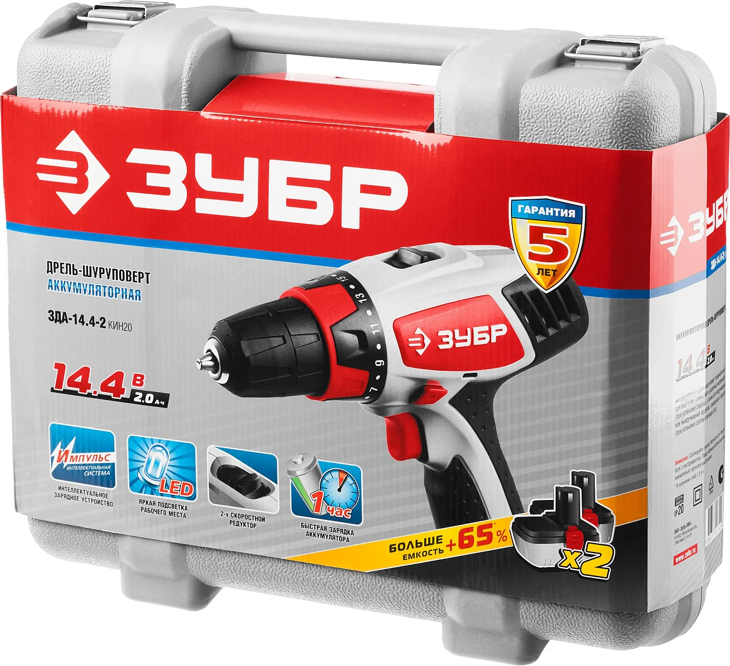 Линейка удобного инструмента для сверления отверстий в различных материалах, а также для вкручивания/выкручивания крепежа отличается эргономичным современным дизайном, улучшенными характеристиками и увеличенной надежностью. Повышенная емкость 2.0 А*ч аккумуляторной батареи существенно увеличивает крутящий момент и время работы. Импульсное быстрозарядное устройство быстро и бережно заряжает батарею, предохраняя ее от преждевременного выхода из строя. Новое качество ″ЗУБР″ для настоящего мастера