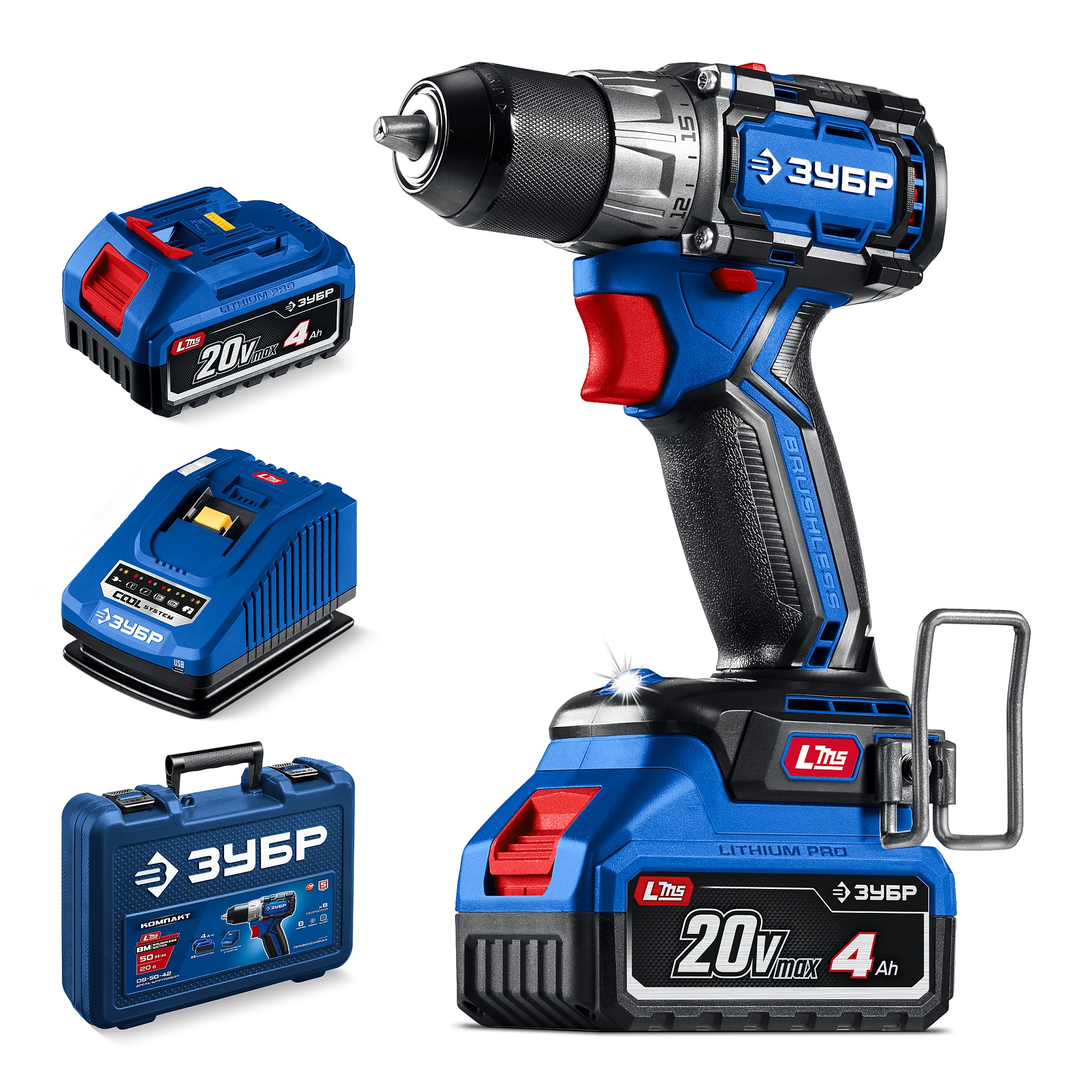 ЗУБР КОМПАКТ #3 20 В, 50 Н·м, 2 АКБ LMS (4 А·ч), бесщеточная дрель-шуруповерт, кейс, ПРОФЕССИОНАЛ (DB-50-42)