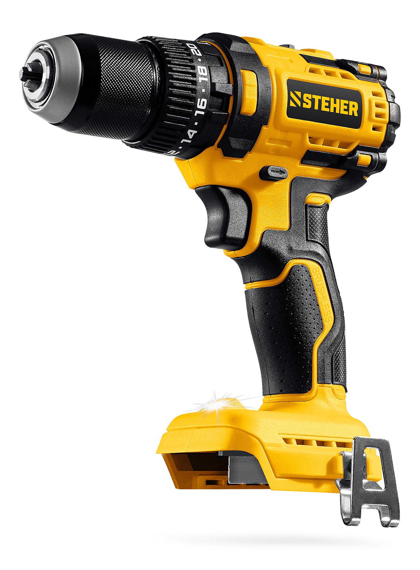 Бесщеточная дрель-шуруповерт STEHER системы LMS с увеличенным крутящим моментом предназначена для быстрого заворачивания саморезов до 8 мм диаметром и сверления отверстий до 30 мм в дереве. Длительная работа от одного заряда обеспечивается эффективным двигателем BRUSHLESS. Расширенная функциональность за счет ударного режима работы