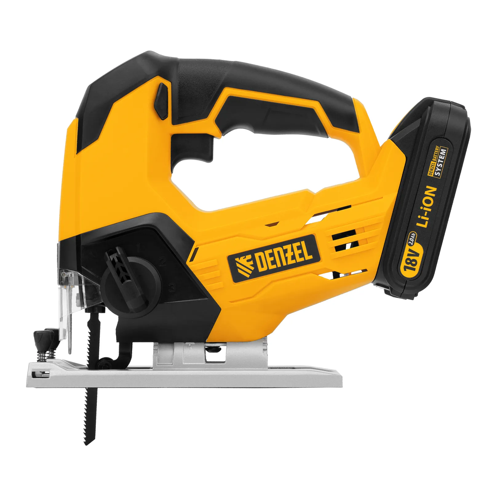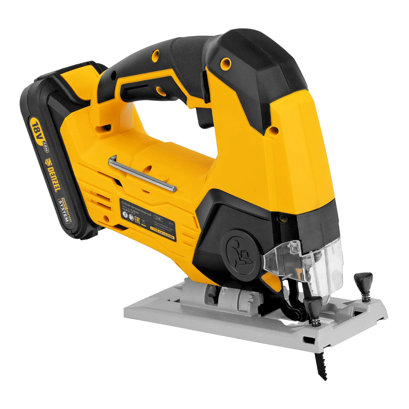 Аккумуляторный лобзик Denzel CJ-80 27201 работает от источника питания Li-Ion с рабочим напряжением 18 В, емкостью 2 А/ч. Предназначен для прямого и фигурного реза листовых материалов из древесины и пластмассы, а также металлических заготовок, ламината, ДСП, ДВП. Максимальная глубина пропила деревянных материалов составляет 80 мм, алюминиевых — 12 мм, стальных — 5 мм. Мощный двигатель позволяет развивать скорость движения оснастки до 2400 ход/мин, что обеспечивает высокую производительность.