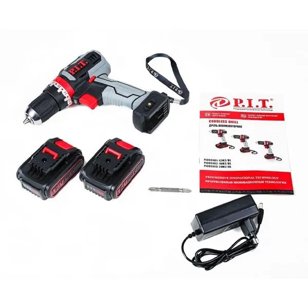 Дрель-шуруповерт P.I.T. PID03001-12M2/BL с функцией осевого удара, оснащенная подсветкой рабочей зоны, с литий-ионовым аккумулятором для работы с крепежом, закручивания/откручивания саморезов и сверлильных работ.