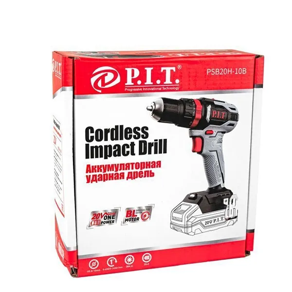 OnePower — это серия инструмента 20 вольт на едином аккумуляторе, для максимально качественной и производительной работы, без проводов и ограничений.Аккумуляторы семейства OnePower оснащены интеллектуальной системой управления. Она защищает инструмент от перегрева, перегрузки, саморазряда и низкого разряда. Все это увеличивает ресурс инструмента. И не одного, а целого арсенала.Из аккумуляторного инструмента P.I.T. можно собрать полноценную мастерскую. Весь инструмент серии OnePower поставляется в двух комплектациях: инструмент с аккумулятором и инструмент без АКБ. В семействе инструментов на единой аккумуляторной системе более 20 инструментов. Независимо от моделей, Вы можете подобрать к инструменту аккумуляторы на 2, 3 и 4 А/ч. Зарядное устройство также универсально. Мощная и удобная бесщеточная аккумуляторная ударная дрель PSB20H-10B. Производительный инструмент с широким спектром применения. Благодаря двухскоростному редуктору, его можно использовать как дрель. На первой скорости инструмент позволяет закручивать саморезы в различную поверхность, а на второй — сверлить отверстия. Удобную работу обеспечивают текстурированный корпус, эргономичная форма и малый вес инструмента. Бесщеточный двигатель для работы в агрессивных условиях. Металлический быстрозажимной патрон 10 мм. Выключатель с плавной регулировкой частоты вращения. Двухскоростной планетарный редуктор.Яркая светодиодная подсветка. Реверс для смены вращения. Скоба для крепления. Эргономичная форма. Ударная функция.