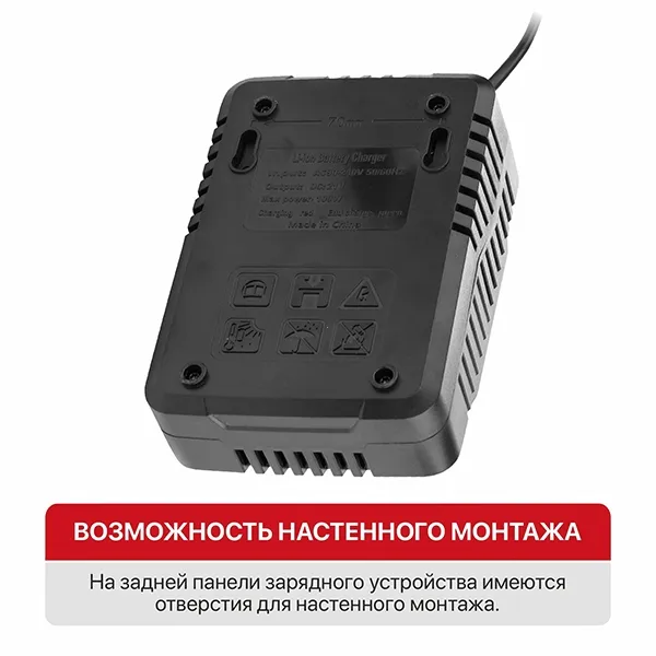 - На задней панели зарядного устройства имеются отверстия для настенного монтажа