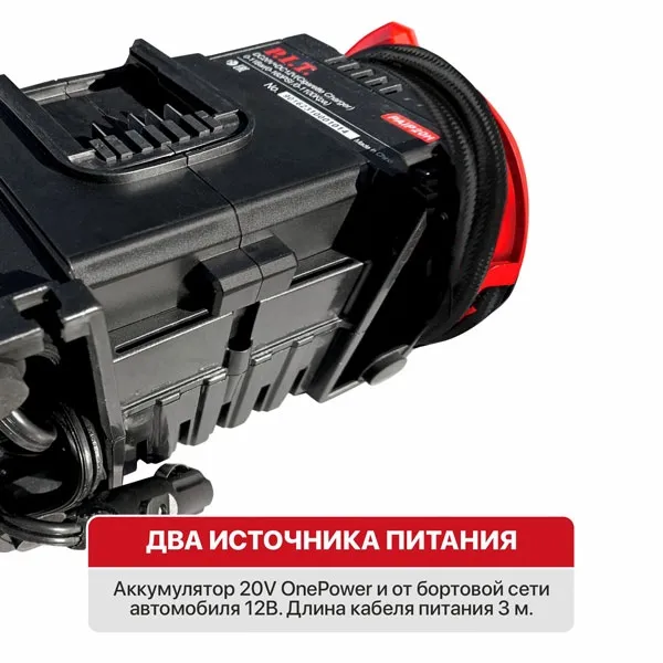 Аккумуляторный компрессор PAIP20H-11A может работать как от батареи 20В семейства OnePower, так и от прикуривателя автомобиля 12В. Данное устройство оснащено насосом низкого давления для надувания и сдувания лодок и матрасов, а также насосом высокого давления для подкачки мячей и шин. Данная модель отличается компактным корпусом и небольшим весом, поэтому компрессор легко перевозить и брать с собой. Компрессор поставляется без аккумулятора и зарядного устройства. Компрессор является представителем семейства OnePower, а значит совместим со всеми аккумуляторами платформы. Согласно вашим задачам и потребностям аккумуляторы нужной ёмкости серии OnePower можно приобрести отдельно.