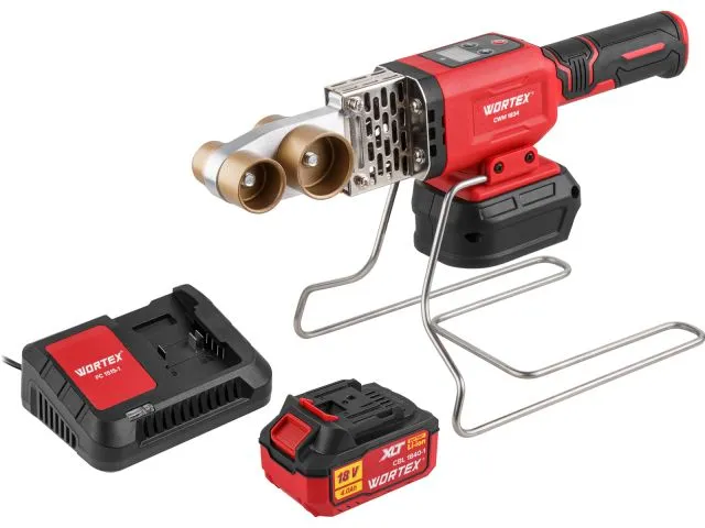 Благодаря электронной регулировке температуры, аккумуляторный сварочный аппарат подойдёт для сварки полимерных труб, изготовленных из любых термопластических материалов. Качество работы обеспечивается низким колебанием температур. В комплекте, помимо лёгкой и устойчивой подставки, присутствуют тефлоновые насадки трёх разных диаметров.Текущая и заданная температуры отображаются на LED дисплее устройства.Для безопасности устройство не начинает нагрев, если не установлена насадка.