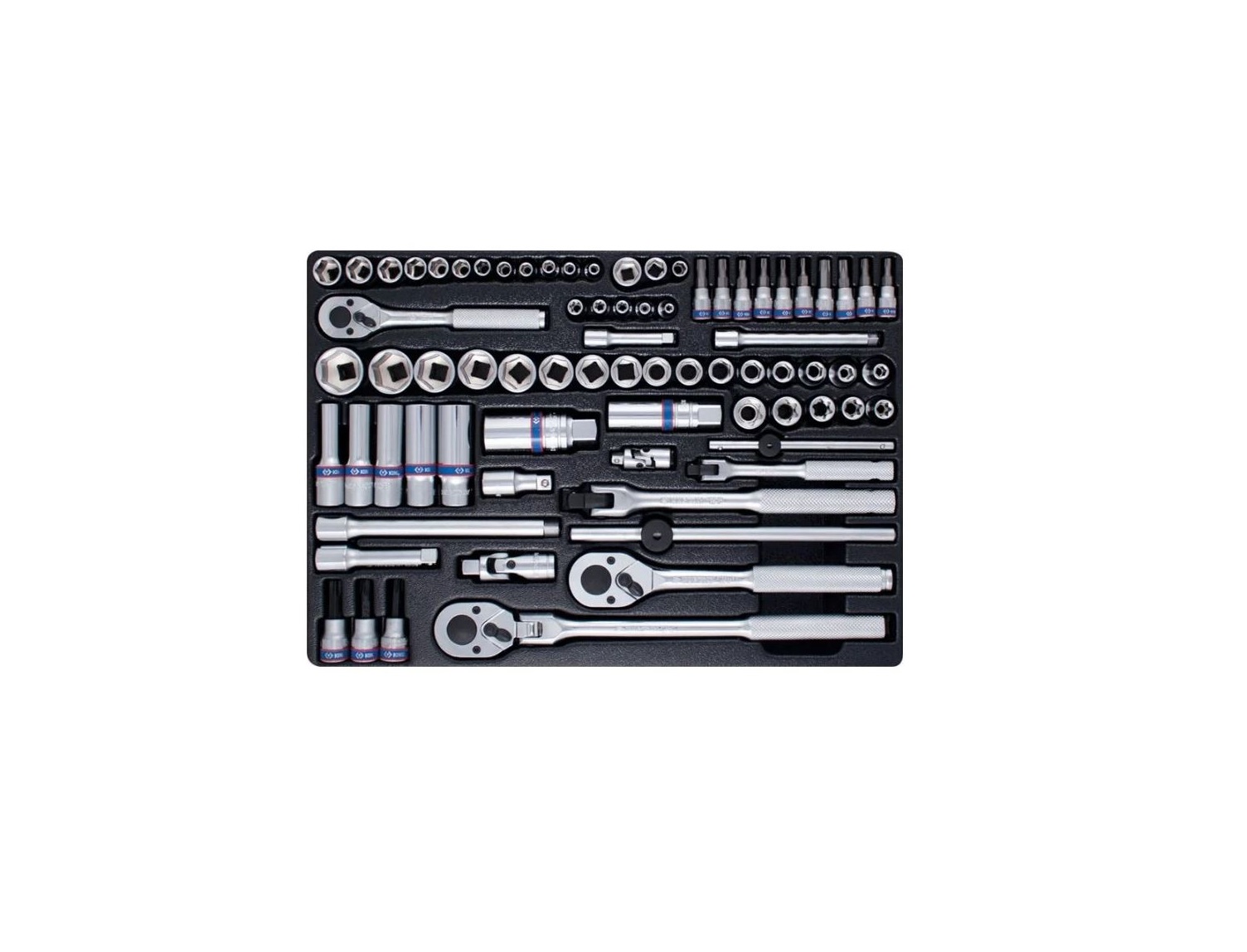 Набор с инструментом торговой марки KING TONY включает в себя торцевые головки и принадлежности, предназначен для монтажа и демонтажа крепёжных узлов различных изделий, устройств и агрегатов.