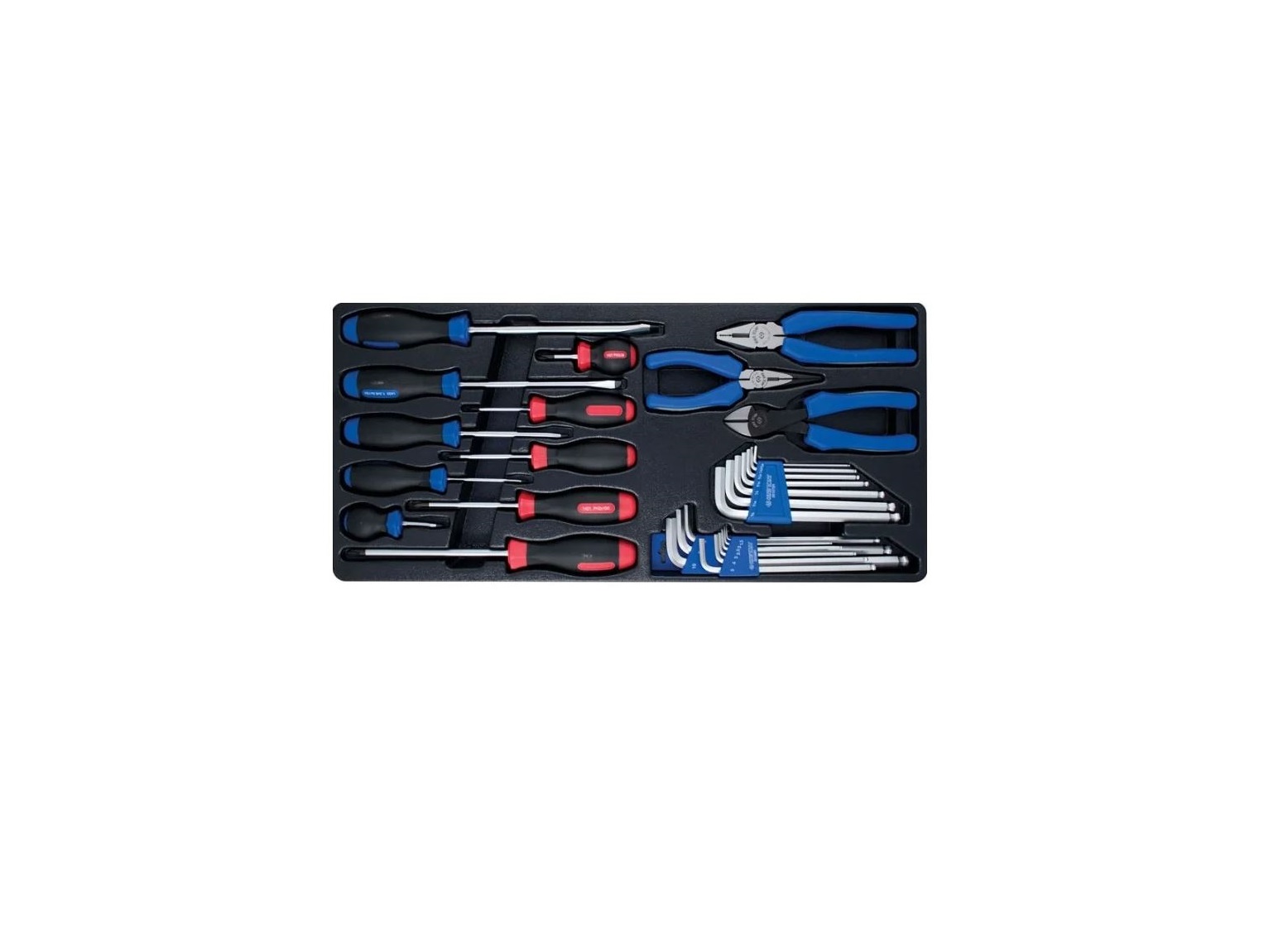Набор предназначен для размещения в ящике инструментальном king tony 87411-6b или в ящике инструментальном мастак 511-06570.