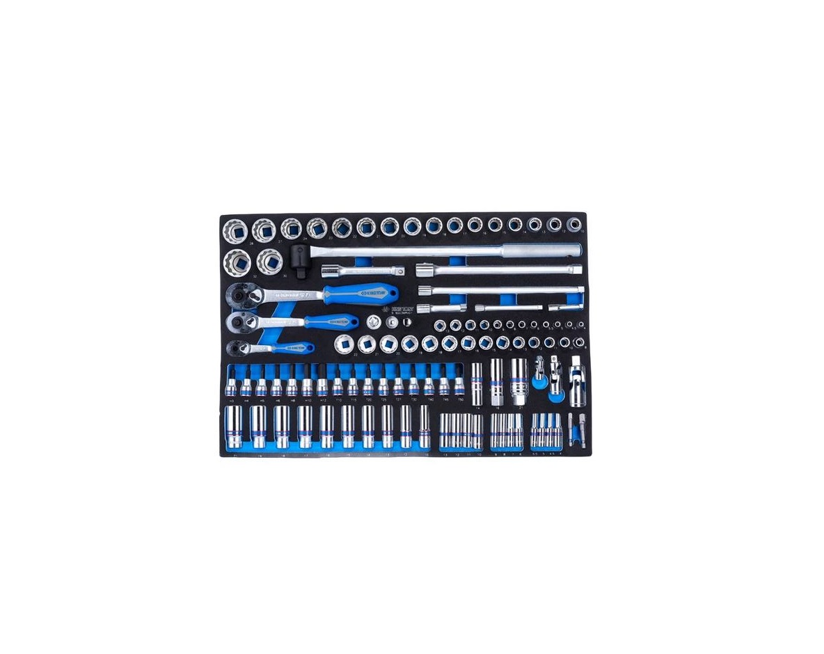 Набор включает в себя головки и принадлежности для работы с крепежом, предназначенные для передачи крутящего момента от инструмента на крепеж, а также для монтажа и демонтажа посаженных гаек и болтов.