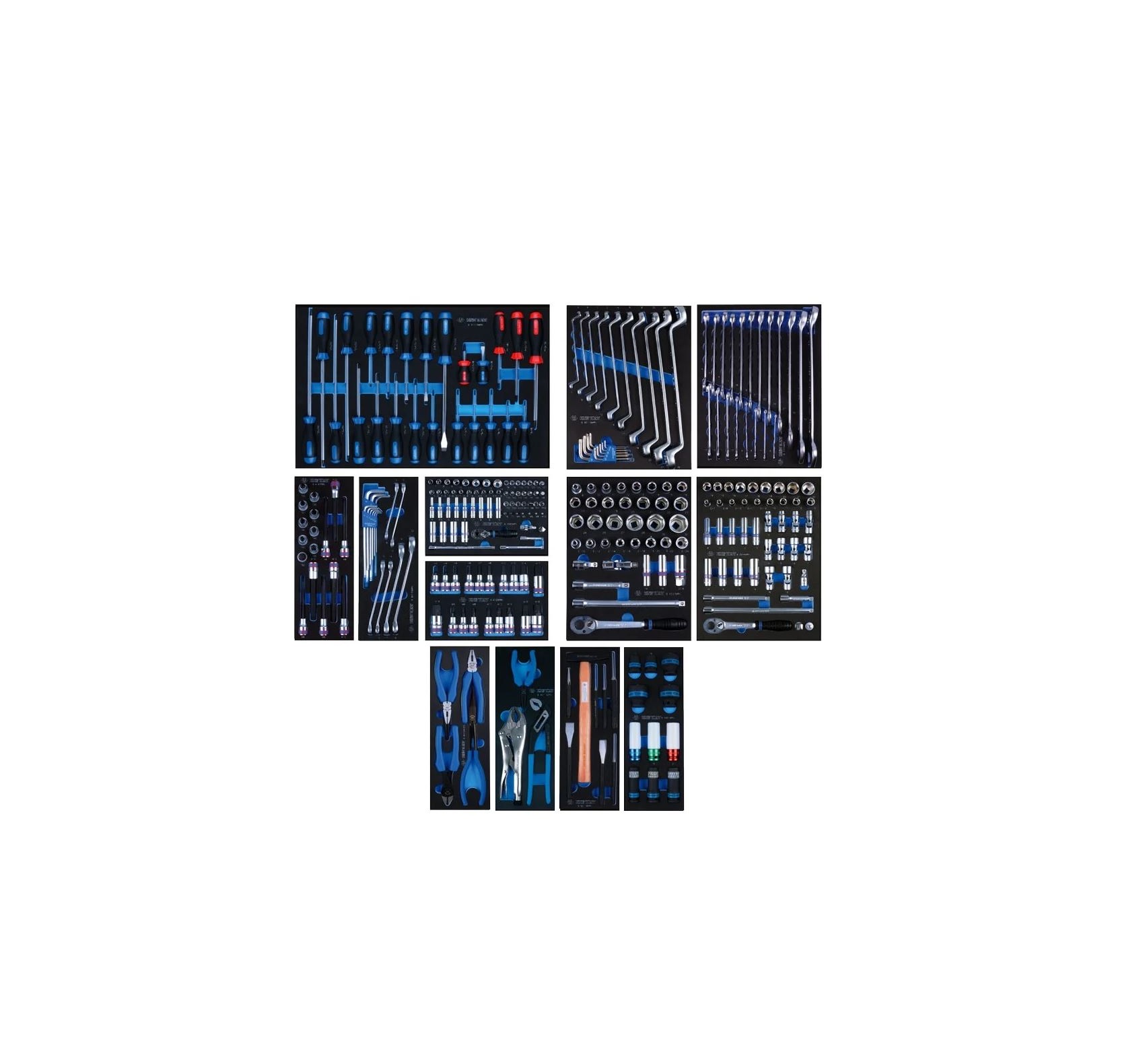 разместив ложементы в инструментальной тележке удобным для вас образом – по типу, назначению или частоте использования, вы всегда будете иметь под рукой тот инструмент или приспособление, которое вам необходимо в данную минуту, а ячейки ложементов позволят содержать набор в полном порядке.
