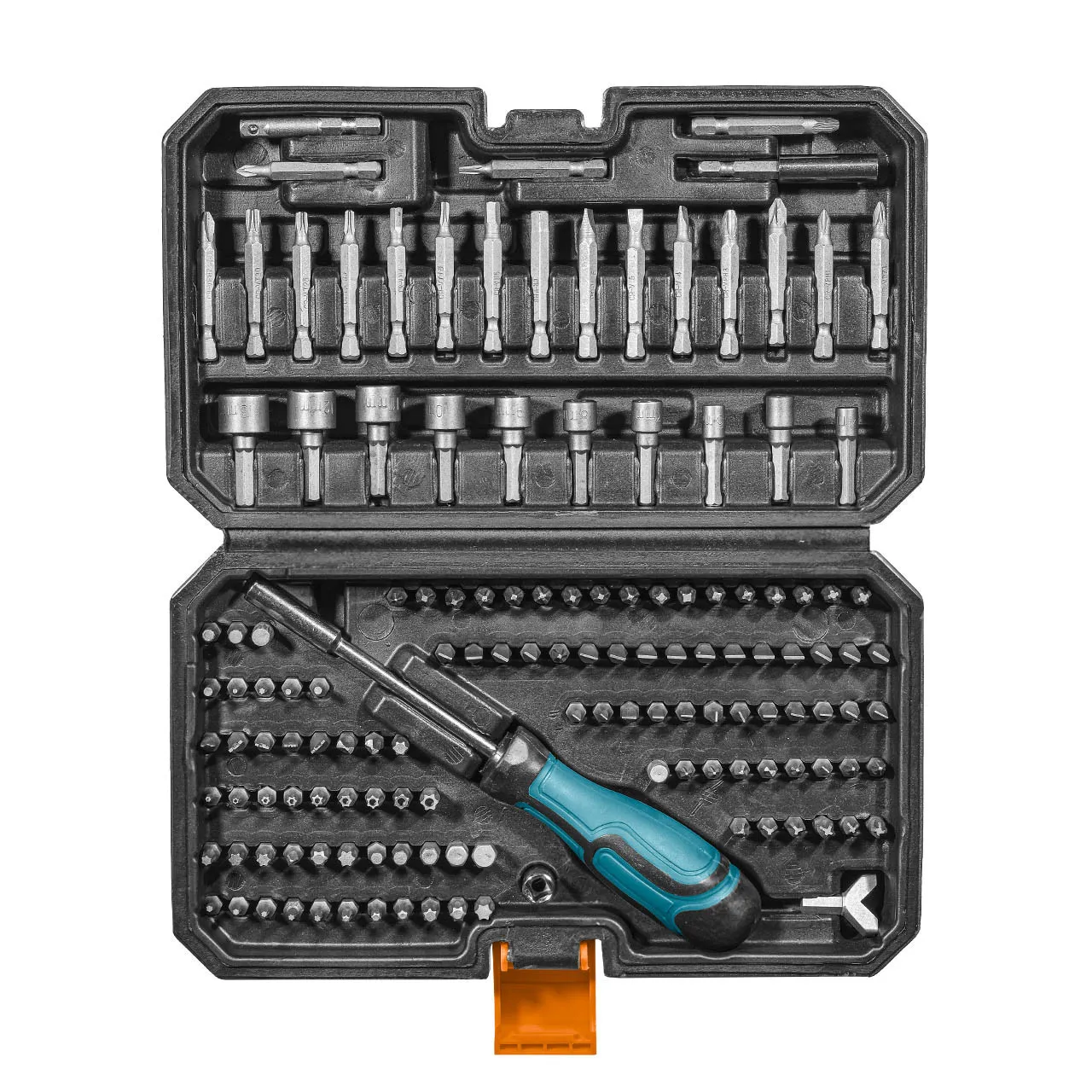 Все металлические элементы сделаны из высокопрочной хромо-ванадиевой стали, набор отлично подходит для работ не только отверткой, но и шуруповертом.