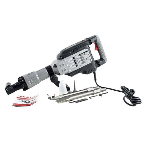 Дополнительная рукоять и эргономичная форма корпуса для удобной работы. Двойная антивибрационная система AVT (антивибрационная технология и амортизированная основная рукоятка). Улучшенная система вентиляции, теперь она эффективнее охлаждает двигатель и редуктор. Модернизированная конструкция ударного механизма и качественный состав масла. Металлический чемодан обеспечивает удобство при хранении и транспортировке. Двойная термообработка патрона, повышенная прочность и надежность. Большая кнопка выключателя с блокировкой во включенном состоянии. Увеличенная длина стволовой части для большей силы удара. Полностью медная обмотка выдерживает до 200 градусов. Поворотная на 3600 D-образная дополнительная рукоять. Расходные материалы в комплекте — зубило и пика. Надежный и мощный двигатель 2000 Вт. Полностью прорезиненная рукоятка.