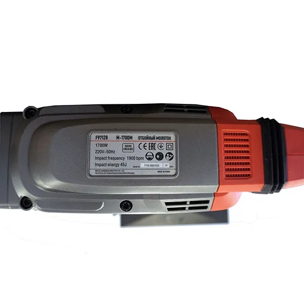 Высокая мощность 1700 Вт и сила удара 45 Дж для эффективного разрушения
