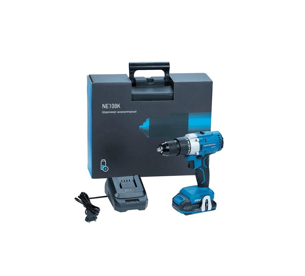 Аккумуляторный шуруповерт Nordberg NE108K 2 скорости, крутящий момент до 80 Нм. Быстрая замена насадок производится за счет зажимного 10-ти миллиметрового патрона.
