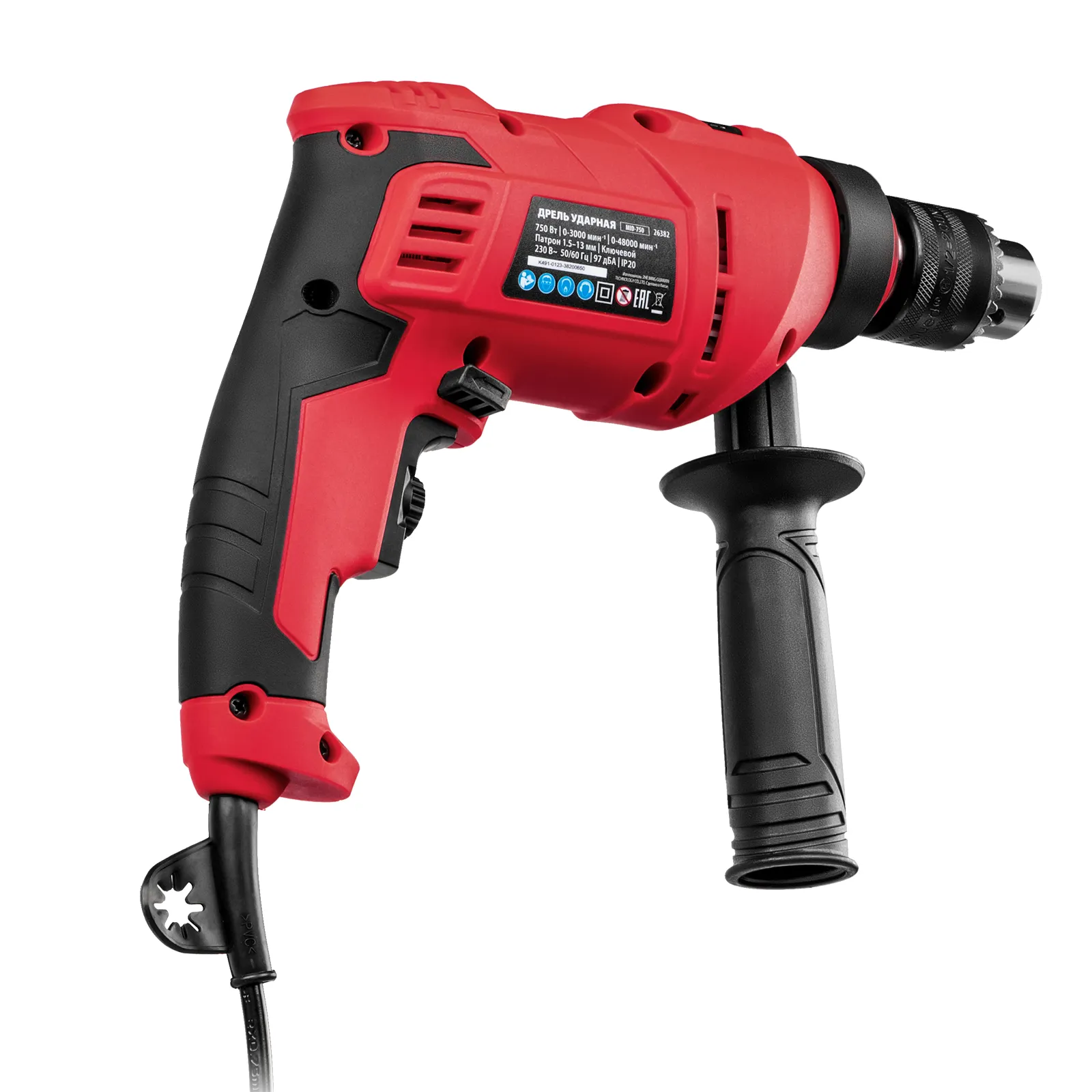 Дрель ударная MTX MID-750 26382 мощностью 750 Вт предназначена для сверления и сверления с ударом отверстий в древесине (до 25 мм), металле (до 10 мм), бетоне (до 13 мм). Ключевой патрон совместим со сверлами диаметром от 1,5 до 13 мм. Частота вращения плавно меняется в зависимости от степени нажатия на кнопку пуска, что облегчает работу с материалами разной плотности.