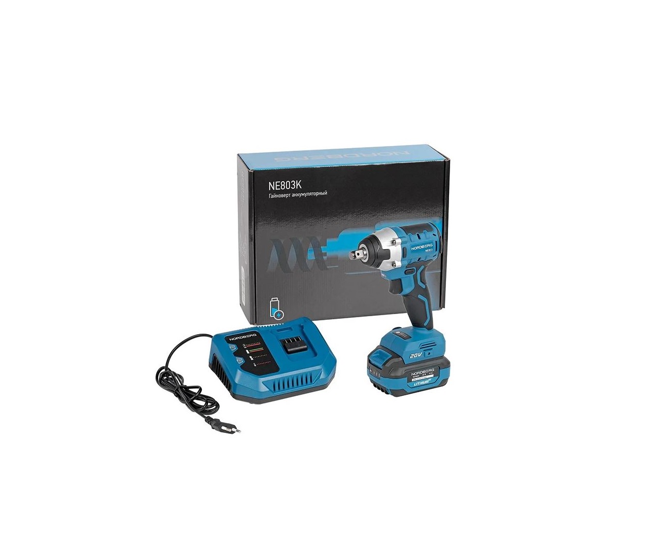 Гайковерт аккумуляторный, 1/2", 20В, 300Нм с 4A акк. и зар. уст-вом 4A, в мешке Nordberg NE803K