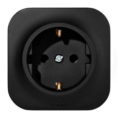 "Розетка с заземлением без защитных шторок накладного (открытого) монтажа Legrand Quteo, цвет ""Чёрный матовый"", степень защиты IP20, номинальный ток 16A, напряжение ~250В, максимальная мощность 3680Вт, винтовые зажимы. без защитных шторок Устанавливается в жилых и общественных помещениях. Применяется для электропитания в зданиях с проводкой с заземлением (с защитным проводником). Подходит как для скрытой, так и для открытой проводки. Идеальная совместимость с кабельными мини-каналами Metra. Особенности изделия: - Глубокий матовый чёрный цвет - Окрашено по технологии, используемой в автомобильной промышленности (стойкий к износу и повреждениям) - Не оставляет отпечатков пальцев и имеет приятную тактильность - Контактная группа изготовлена из латуни CuZn37, имеет высокую степень упругости и сохраняет плотный контакт с вилкой, при длительной эксплуатации - Скоба заземления имеет особый профиль для большей прочности - Зажимы для присоединения проводников винтовые, с невыпадающими винтами, что исключает их потерю при монтаже - Все токоведущие части розетки имеют защиту от случайного прикосновения - Механизм изготовлен из высококачественного поликарбоната: обладает высокой электробезопасностью, не поддерживает горение - Простое выравнивание изделий при установке в ряд,благодаря специальной форме основания - Корпус ударопрочный из пластичного полипропилена, стойкого к внешним воздействиям, экологичного и безопасного - Корпус крепится к механизму винтом - Перфорация на корпусе для безошибочного вырезания отверстий при монтаже открытой проводки - В основании преднарезаны 4 отверстия для подвода кабеля при монтаже скрытой проводки"