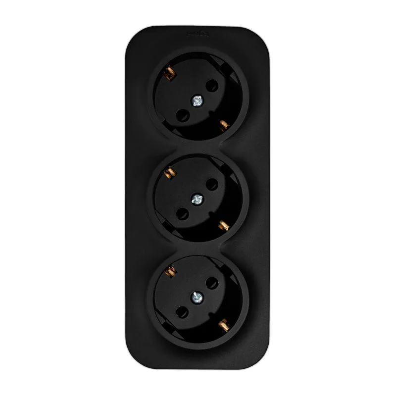 "Розетка трёхместная с заземлением с защитными шторками накладного (открытого) монтажа с предварительным подключением Legrand Quteo, цвет ""Чёрный матовый"", степень защиты IP20, номинальный ток 16A, напряжение ~250В, максимальная мощность 3680Вт, винтовые зажимы. Устанавливается в жилых и общественных помещениях. Применяется для электропитания в зданиях с проводкой с заземлением (с защитным проводником). Шторки осуществляют защитную функцию путём ограничения доступа к токоведущим контактам. Доступ открывается только при подключении вилки. Подходит как для скрытой, так и для открытой проводки. Идеальная совместимость с кабельными мини-каналами Metra. Особенности изделия: - Глубокий матовый чёрный цвет - Окрашено по технологии, используемой в автомобильной промышленности (стойкий к износу и повреждениям) - Не оставляет отпечатков пальцев и имеет приятную тактильность - Все розетки в блоке соединены между собой токоведущими шинами, что обеспечивает быстрый монтаж - Гнёзда розеток расположены под углом 45°: удобное подключение вилок различного типа - Контактная группа изготовлена из латуни CuZn37, имеет высокую степень упругости и сохраняет плотный контакт с вилкой, при длительной эксплуатации - Скоба заземления имеет особый профиль для большей прочности - Зажимы для присоединения проводников винтовые, с невыпадающими винтами, что исключает их потерю при монтаже - Все токоведущие части розетки имеют защиту от случайного прикосновения - Механизм изготовлен из высококачественного поликарбоната: обладает высокой электробезопасностью, не поддерживает горение - Простое выравнивание изделий при установке в ряд,благодаря специальной форме основания - Корпус ударопрочный из пластичного поликарбоната, стойкого к внешним воздействиям, экологичного и безопасного - Корпус крепится к механизму винтами - Перфорация на корпусе для безошибочного вырезания отверстий при монтаже открытой проводки - В основании преднарезаны 4 отверстия для подвода кабеля при монтаже скрытой проводки"
