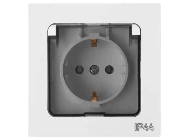 Розетка 1-ая с з/к крышкой прозрачн (скрытая, с/з, брызг. защ.) белая, Astrum, Bylectrica