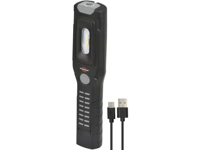 Благодаря переключению уровней (точечный-100%-50%) сверхъярких SMD-светодиодов, светодиодный фонарь для мастерской светит до 10 часов. Зарядка инспекционного фонаря осуществляется через интерфейс USB C и с помощью кабеля для зарядки USB A - USB C, входящего в комплект.